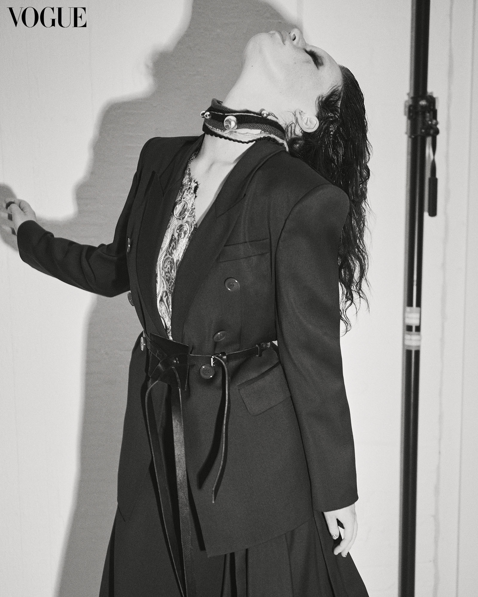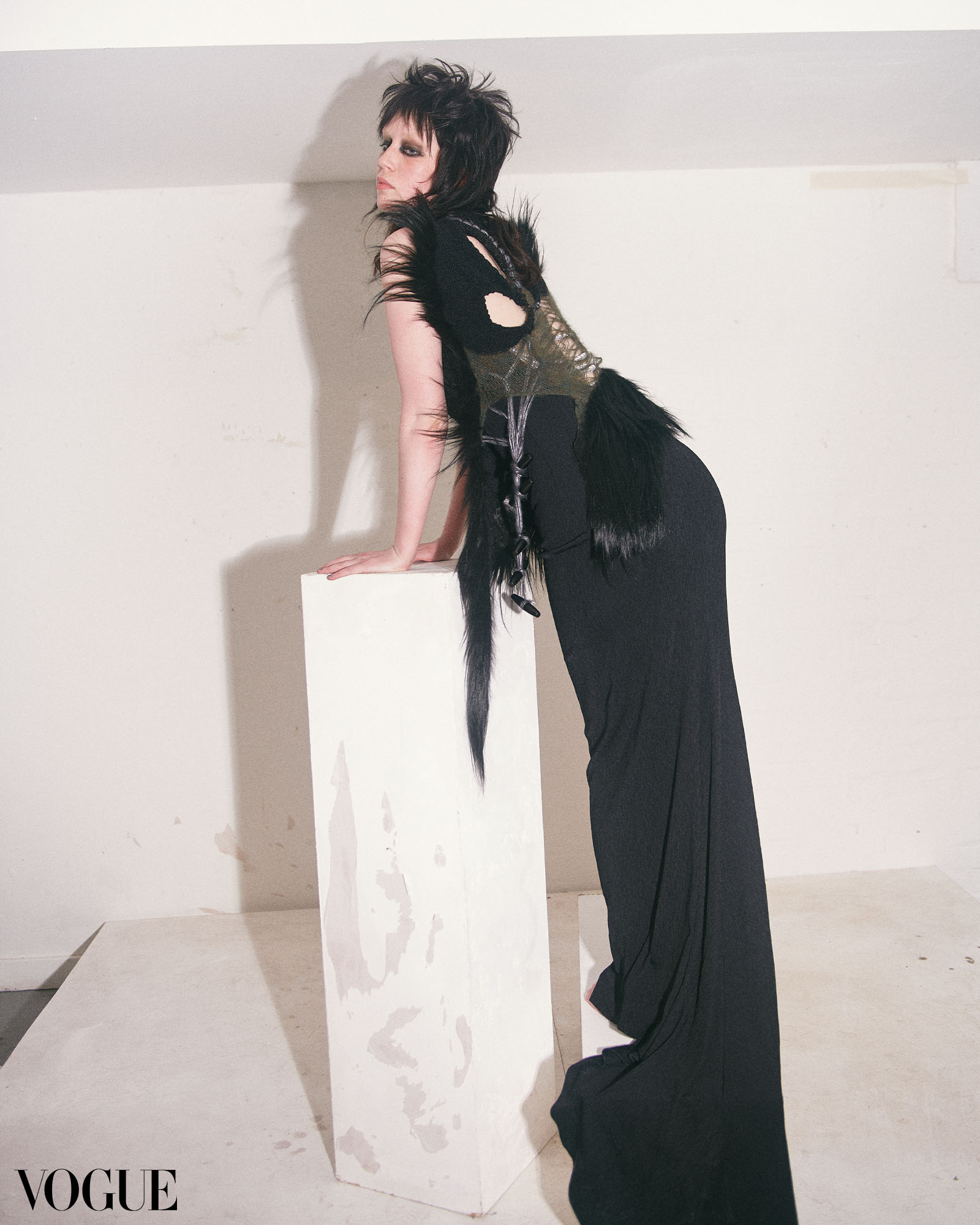 Molly wears a VIVIENNE WESTWOOD suit, FRANZISKUS POSCHL top, VIOLENT. KI necklace, DONGHAN LI belt. Photo by Paul Whitfield