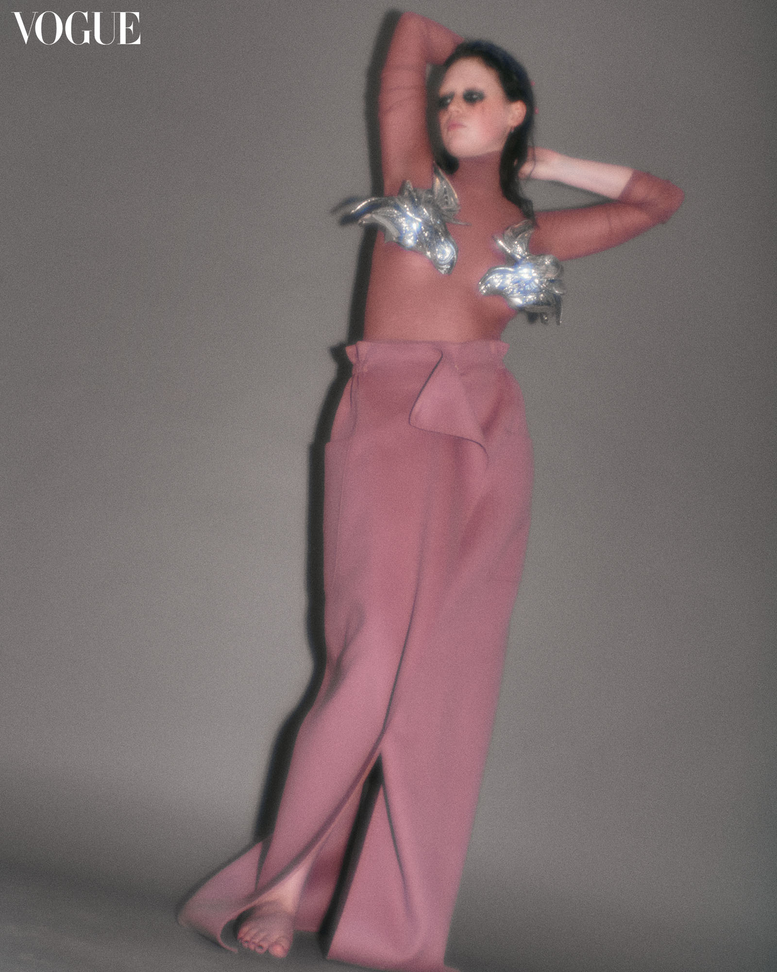 Molly wears a top and skirt from MAX MARA, and a FANRUI SUN 3D-printed piece. Photo by Paul Whitfield