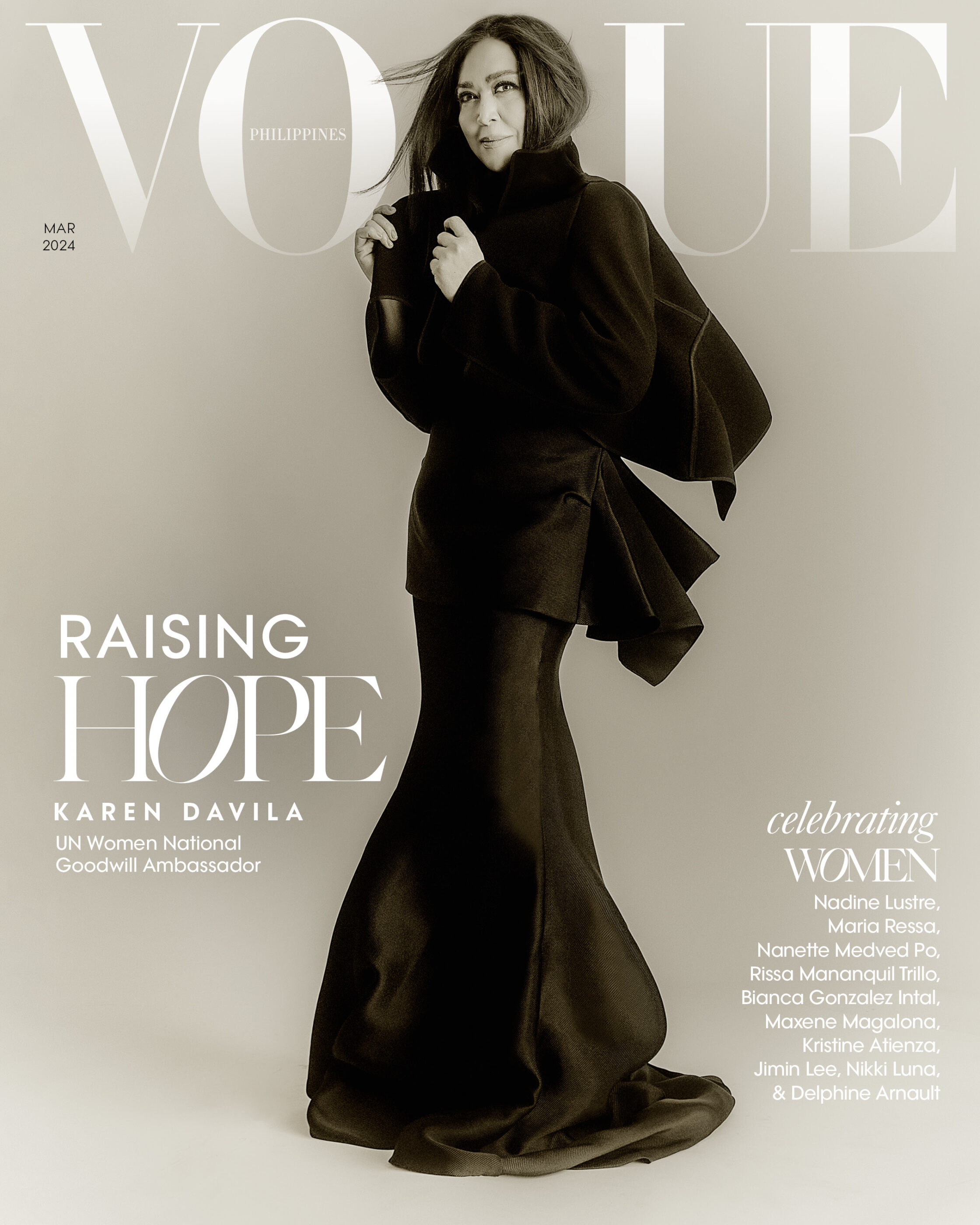 Karen Davila fronts Vogue Philippines’ March 2024 issue, themed “Raising Hope” in the spirit of International Women’s Month. Visit vogue.ph everyday this month for daily features on inspiring women, as nominated by the people whose lives they’ve changed.