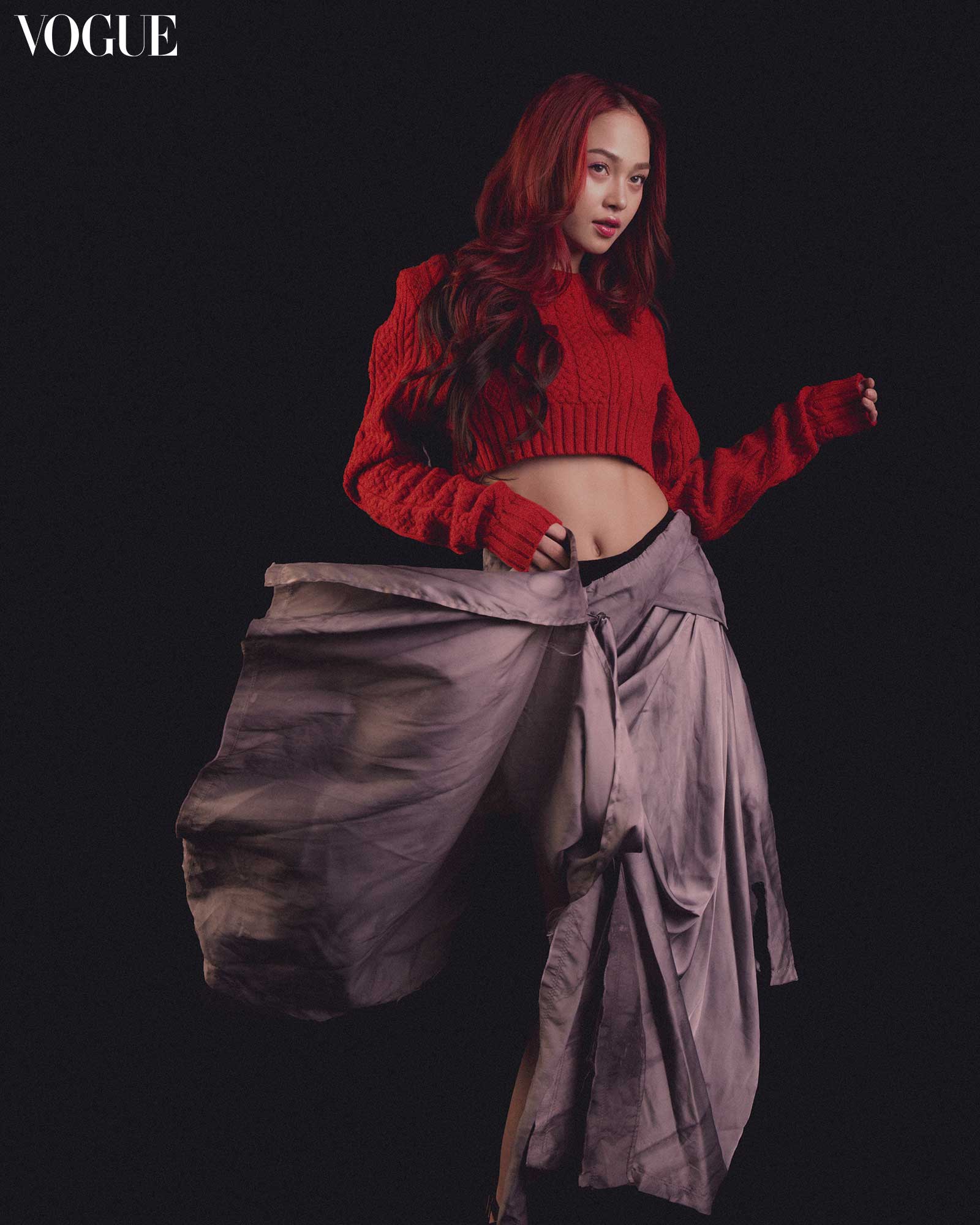 At 11:00 in the morning, AC Bonifacio was all smiles as she kicked off her day with a photo shoot with Vogue Philippines. “Hello, I’m AC po!” she cheerily greeted everyone. As quick as she flashed a warm smile, Bonifacio quickly snapped into a different mode when the photo shoot began, seamlessly transitioning into various poses. No matter how big or subtle, every movement is deeply ingrained in her experience as a performer. Not even the wind blowing in different directions could faze the young talent. She simply flows along effortlessly.
