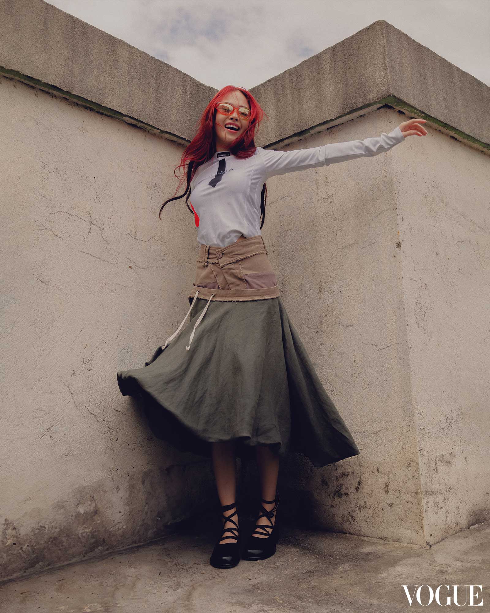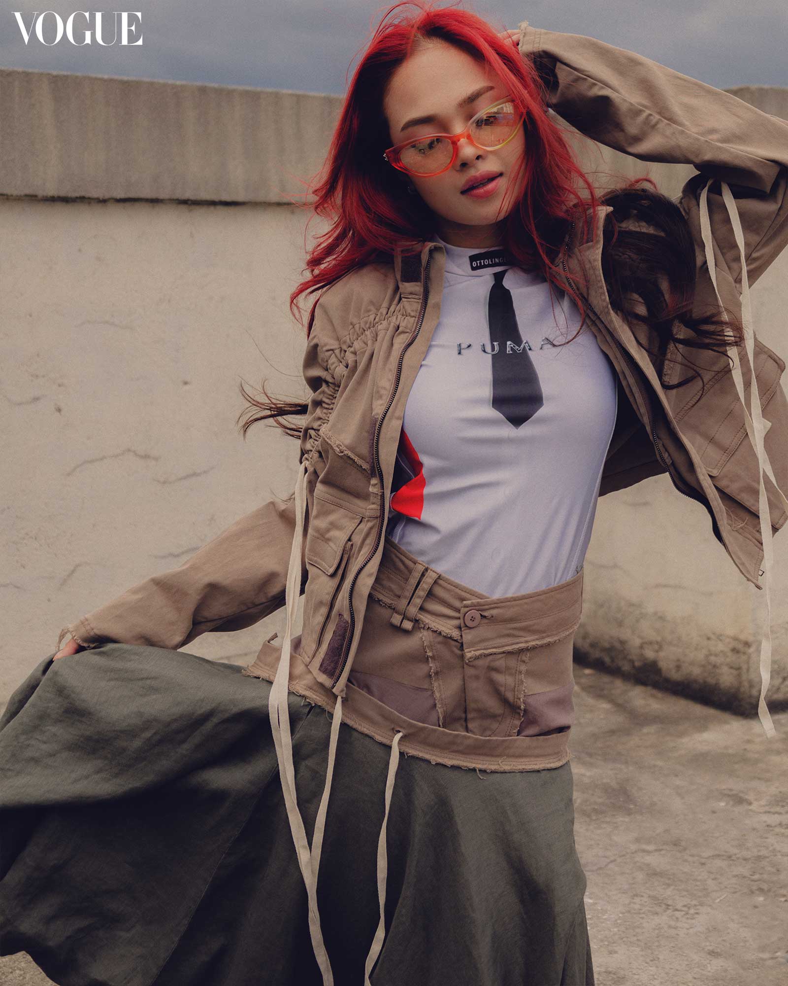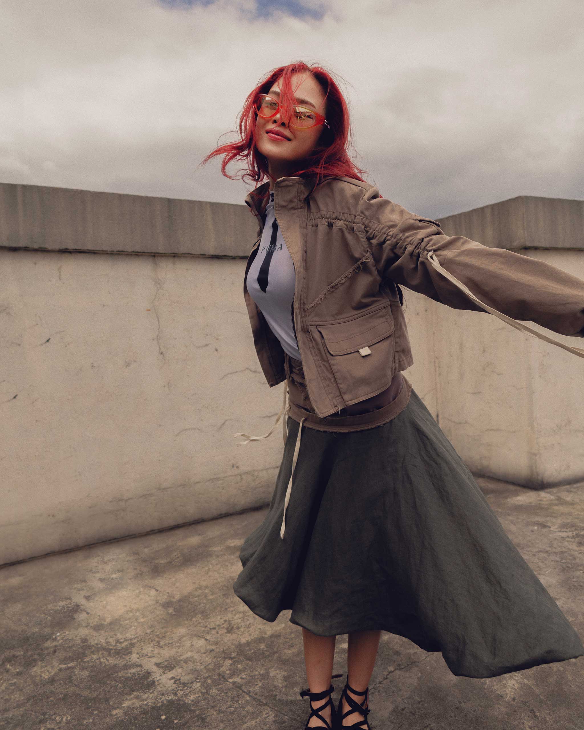 AC Bonifacio wears Gentle Monster sunglasses; Ottolinger jacket, top, skirt,; Shushu Tong shoes. Photo by Joseph Bermudez, styled by Andrea Ang and Chelsea Sarabia, art directed by Bea Lu