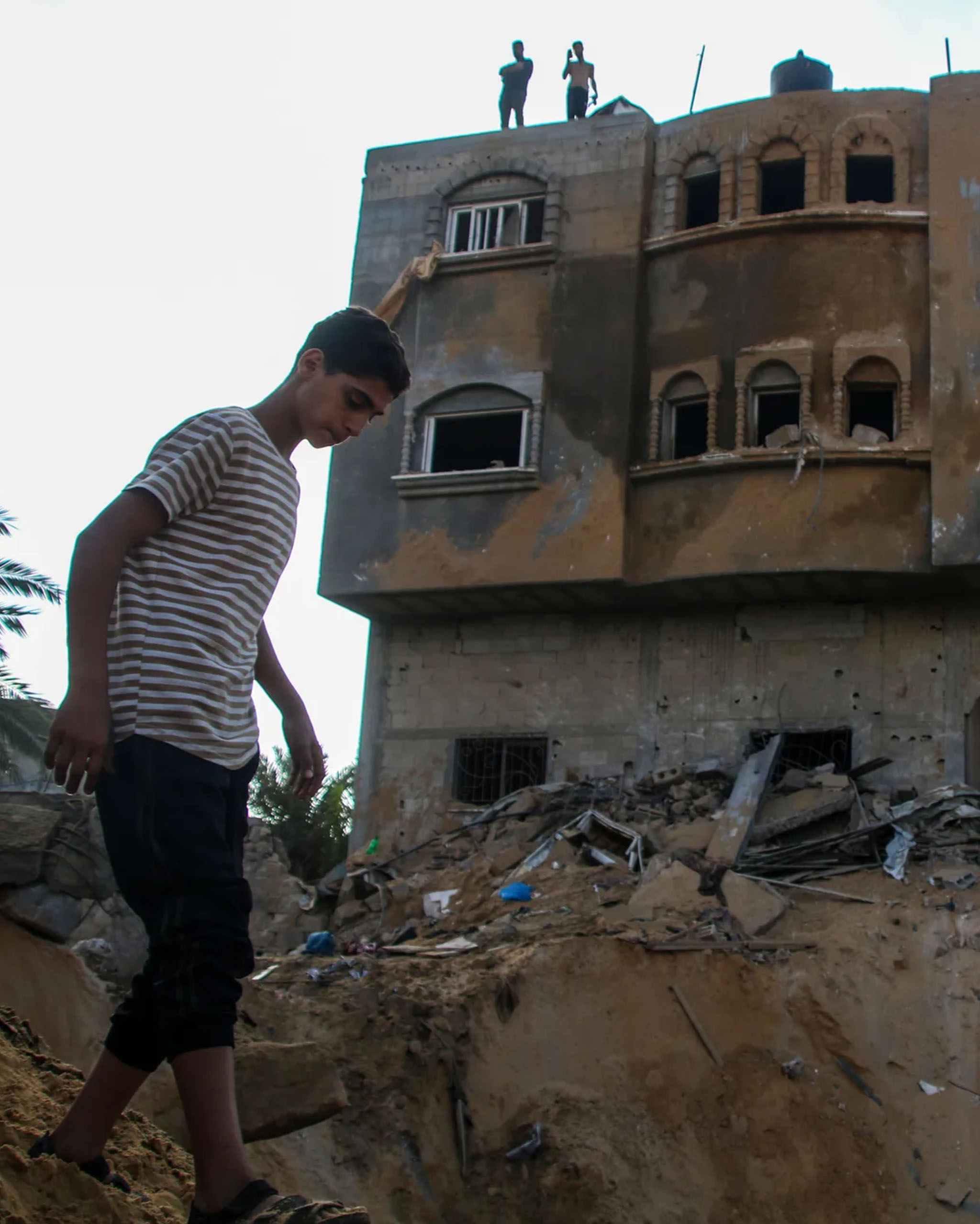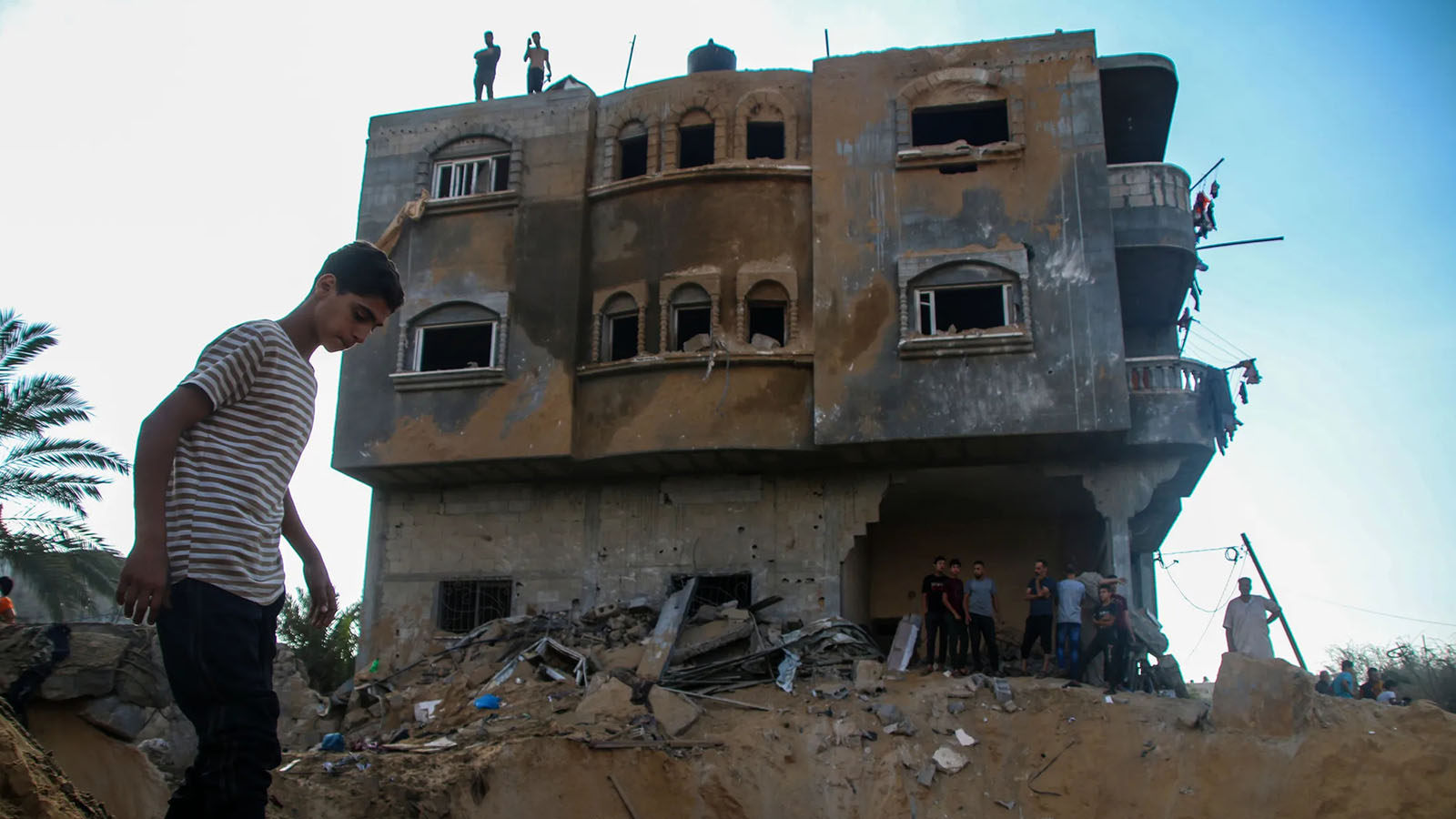 Residents in the Gaza Strip survey a damaged building.Photo: Getty Images