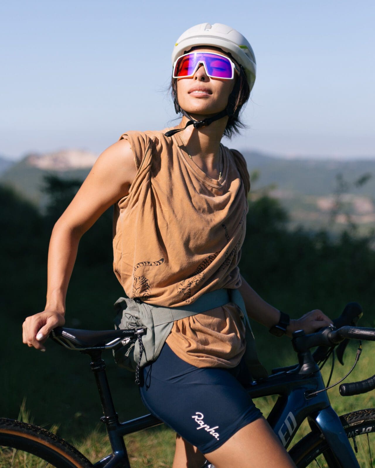 Forget anyone who declares that you must wear a certain pair of shorts or outfit to be considered a serious cyclist. The more you ride, the more you’ll figure out what works best for you. That can look like a fitted cycling jersey and bib shorts to some, while for others it’ll just be a pair of jean shorts and a button-down shirt.