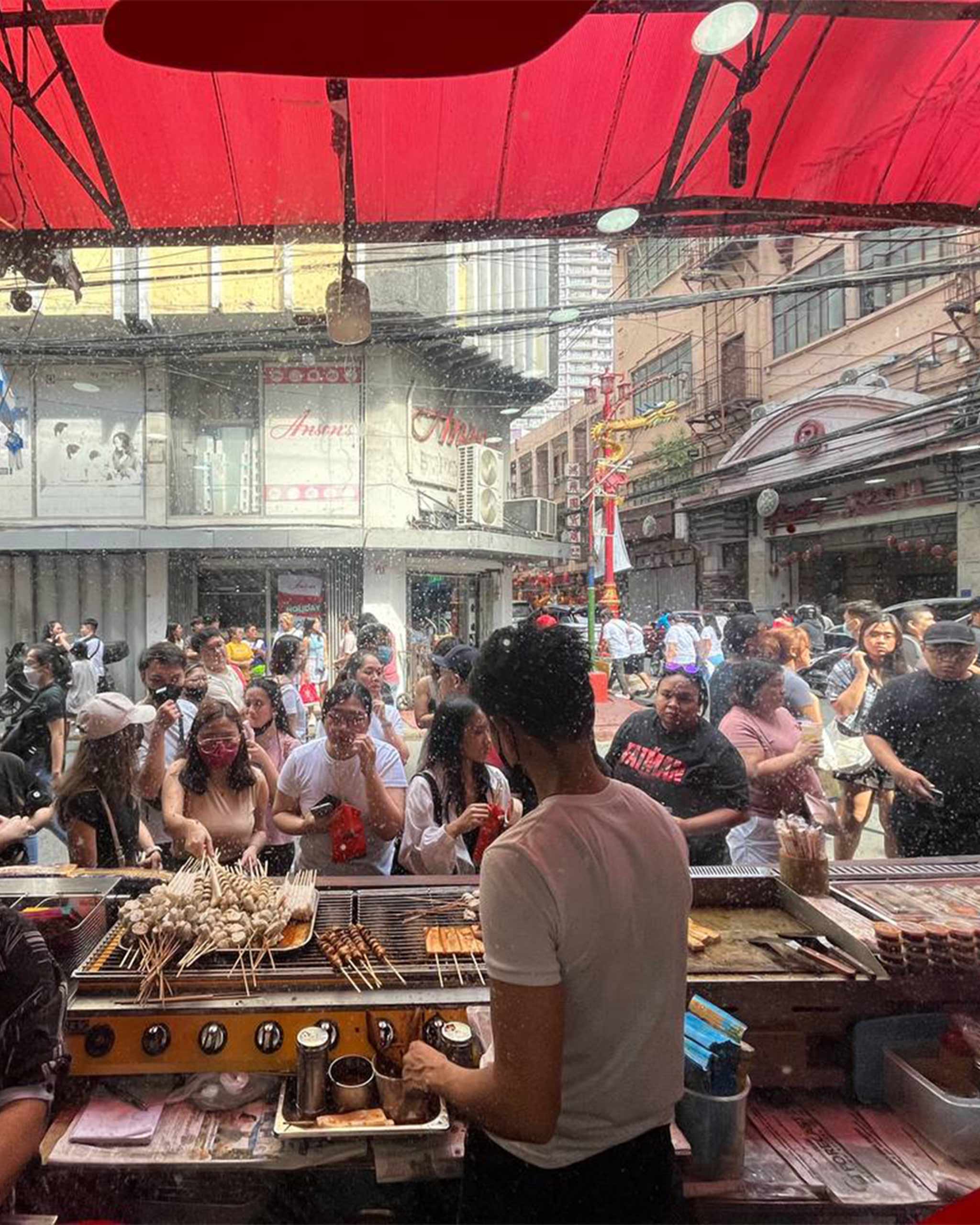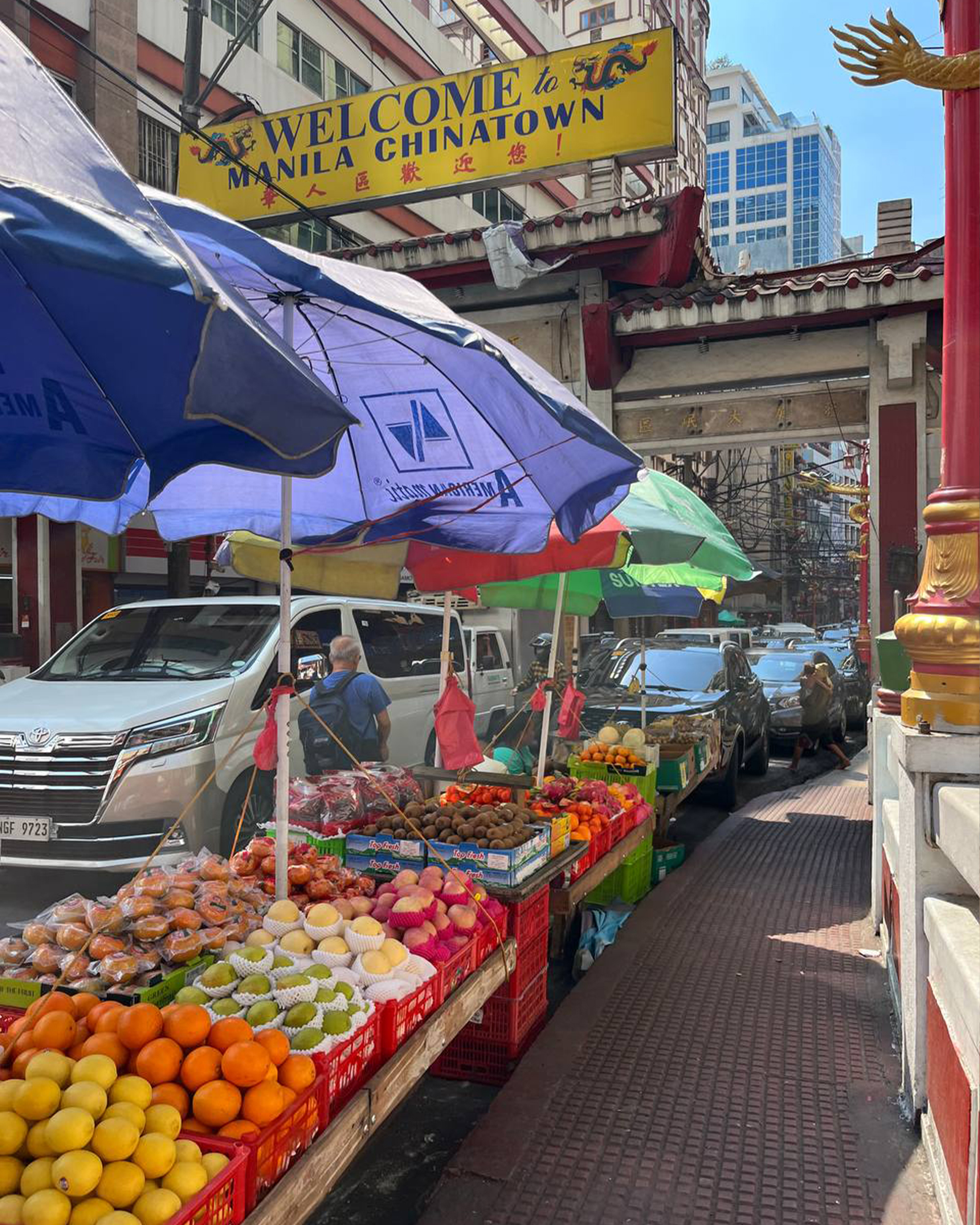 3:00 PM: “The trip from Makati back to Escolta usually takes quicker (around 30-40 minutes) if it isn’t rush hour. So we try to be back in downtown Manila by 15:00 for a late lunch. Walking back to Ongpin we often pass by a few fruit stands so we usually get fresh fruits to bring home. I like eating at this vegetarian turo-turo space called “Vege Select” which has a wide selection of plant-based food (sisig, adobo, etc) and a vegetarian skewer set smothered in spices.”