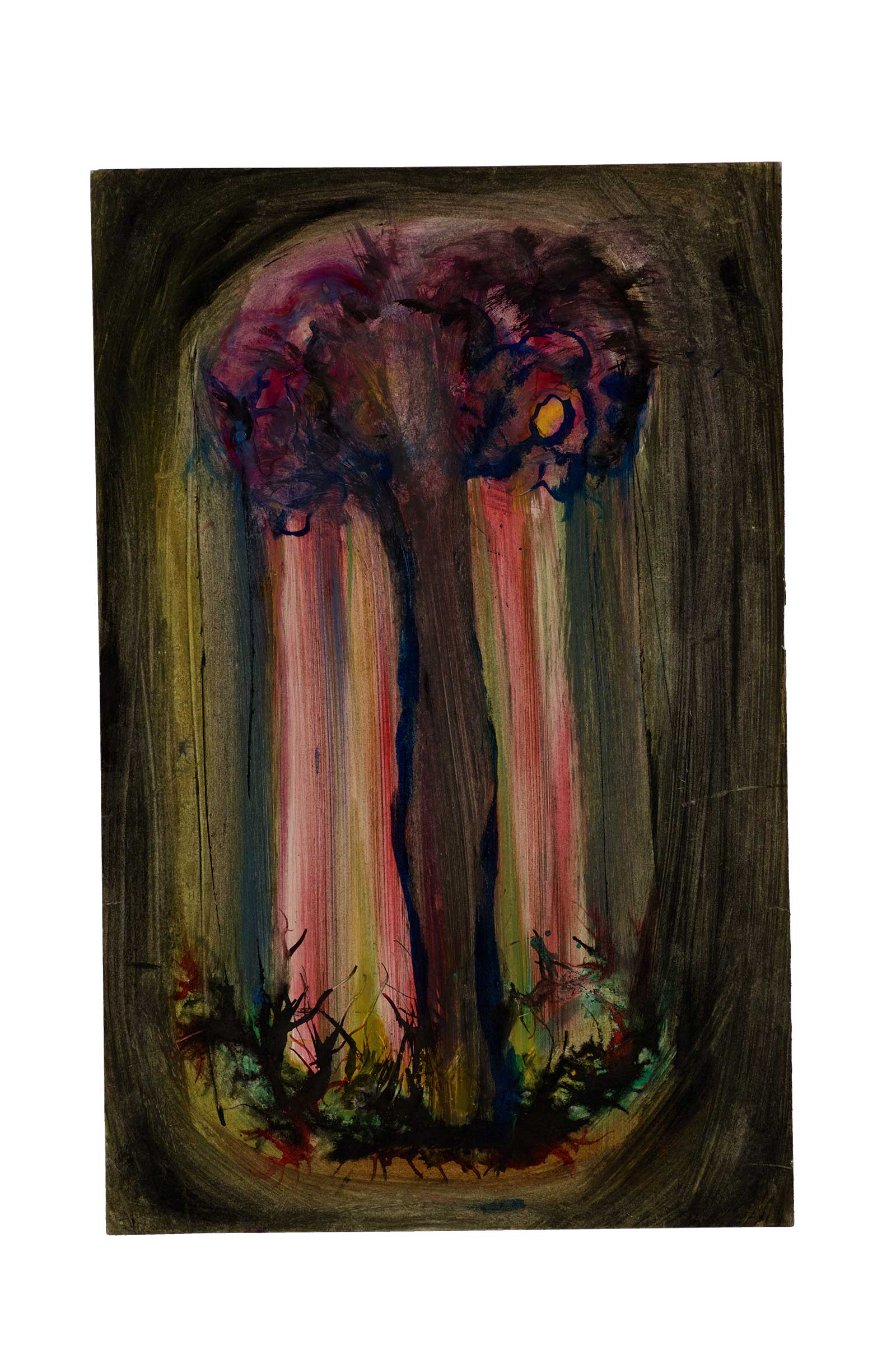 David Medalla, Untitled, 1973. Ballpoint pen, colored pencil, felt-tip marker, and watercolor on aluminum foil-coated board. 5 7/16 × 4 1/2 in. (13.8 × 11.5 cm). Courtesy of David Medalla Archive and another vacant space, Berlin.