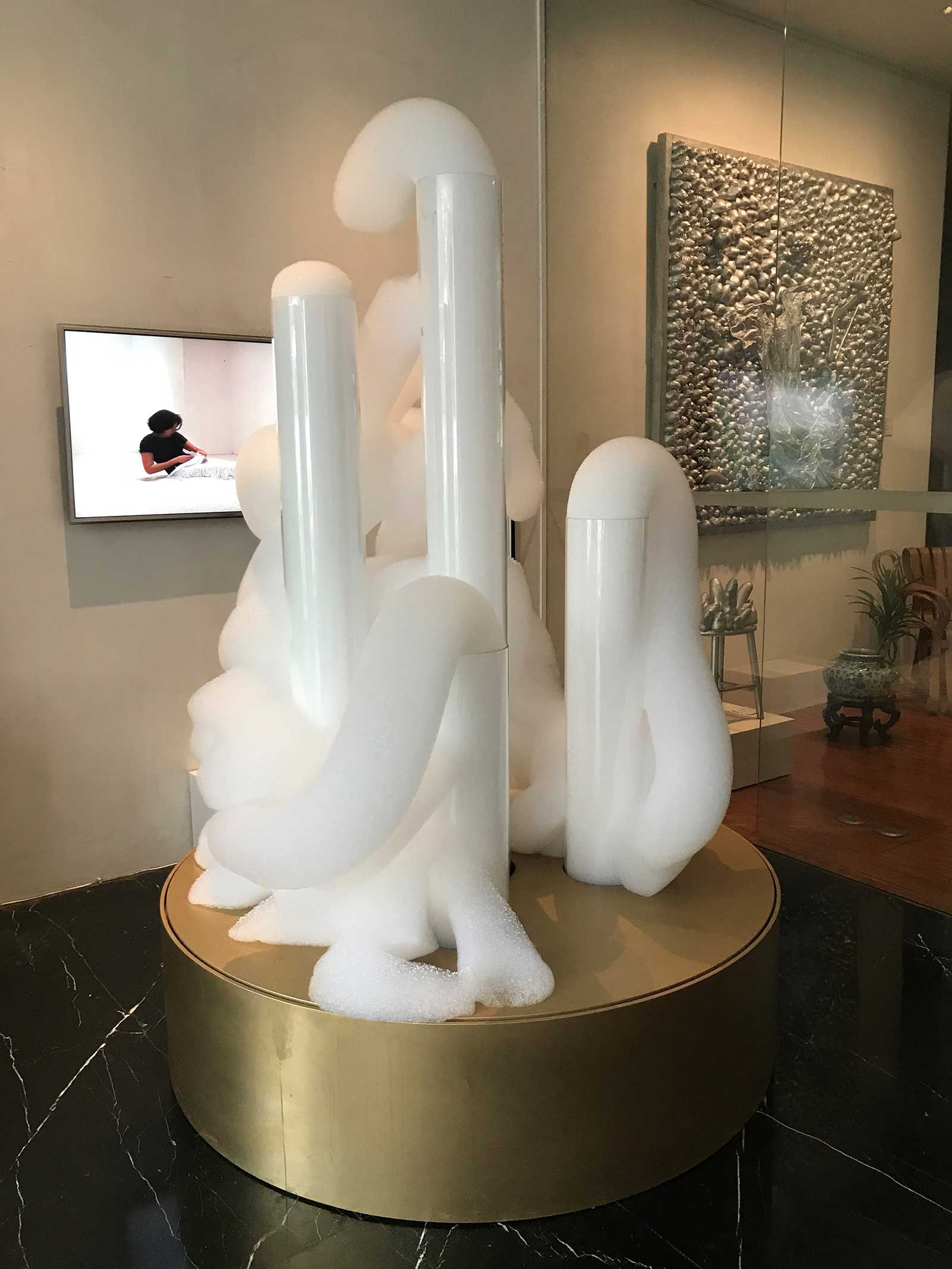 What’s not in question is that Medalla was a pioneer, particularly in the realms of kinetic art and participatory art—fancy language, respectively, for art that moves and changes over time, as well as art which invites active input from the audience. Medalla is best known for his Cloud Canyons, large sculptures which, through trickery of mechanics and tubing, produce elegant, thrusting columns of bubbles. Much admired by Dada titans Marcel Duchamp and Man Ray, one of the Cloud Canyons sculptures is now in the Tate Britain’s permanent collection, while Cloud Canyons No. 31 is on permanent display at the BDO headquarters in Ortigas, acquired in 2019 by Mara Coson, who oversees the bank’s art collection.