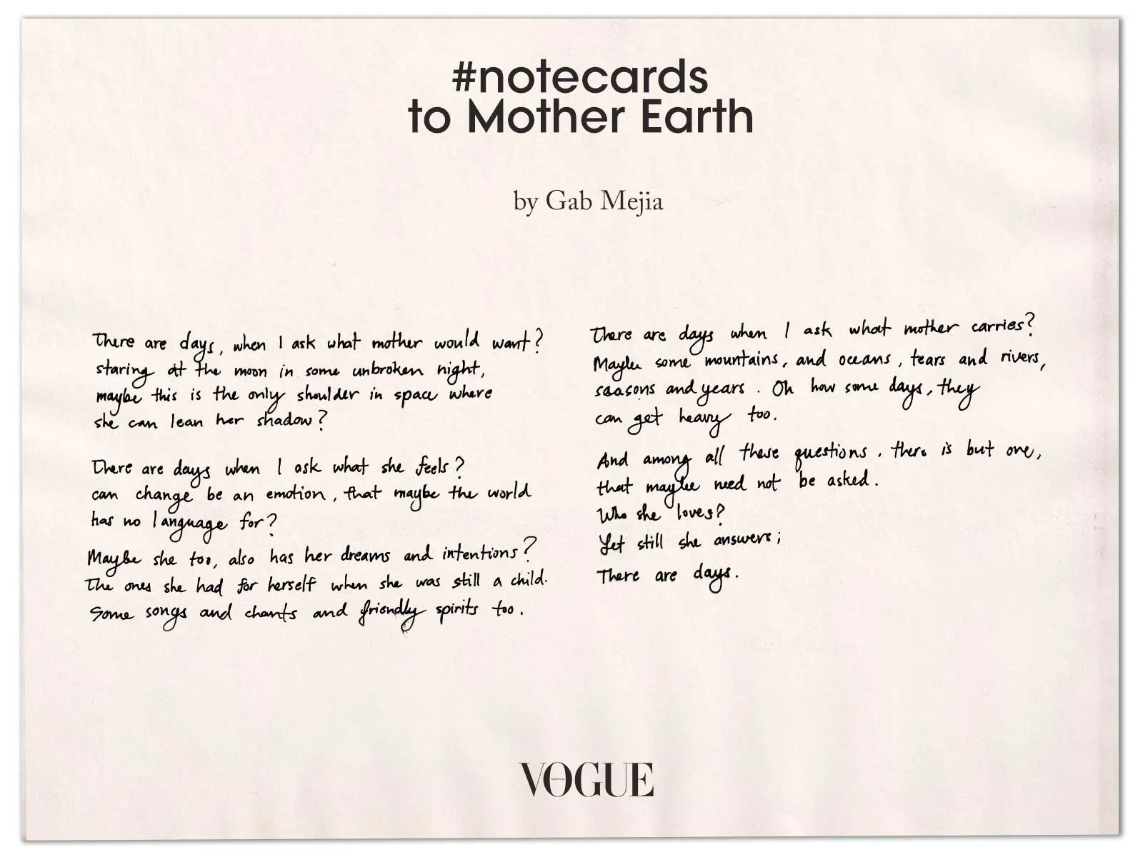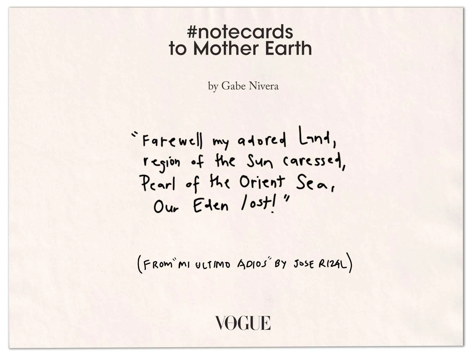 Vogue Philippines invited five photographers, Jacob Maentz, Gab Mejia, Gabriel Nivera, Cru Camara, and Andie Remulla, to share their personal favorite photographs of Philippine landscapes, along with personal messages of gratitude.
