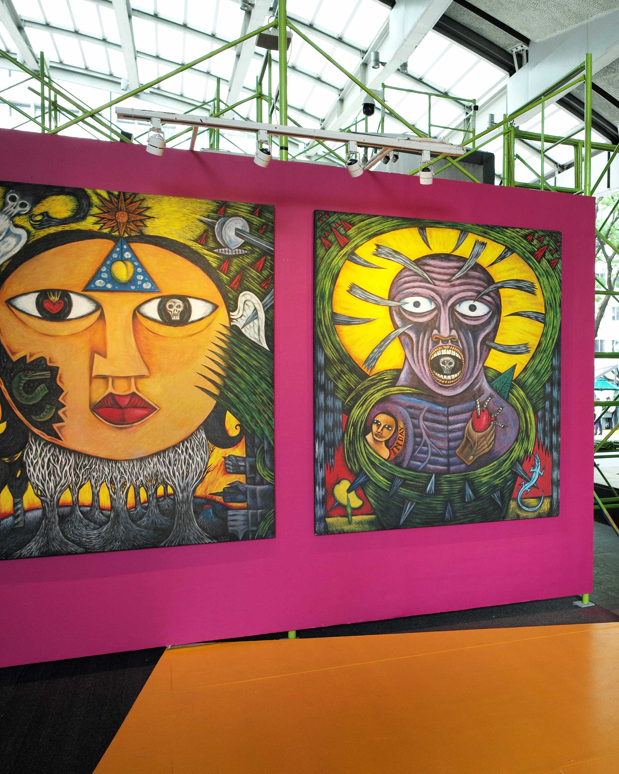 The Art Fair PH/Projects space at Art Fair Philippines is designed by collaborators Rita Nazareno and Gabriel Lichauco of Nazareno/Lichauco, inspired by “temples of worship.” Featured exhibitions include expressionist painter Manny Garibay‘s “Dambana: A Critical Reflection on Belief, Power, and Memory,” and multi-disciplinary image maker Manuel Ocampo’s “Ideological Mash-Up/Remix.” Sensory explorateur Goldie Poblador examines the dark side of femininity in “The Rise of Medusa,” ceramicist Jezzel Wee presents a collection of ceramic dolls that create sounds in “Pagbulong,” while sculptor Ryan Rubio displays his rock sculptures in an exhibition entitled “The pain passes… the beauty remains.”