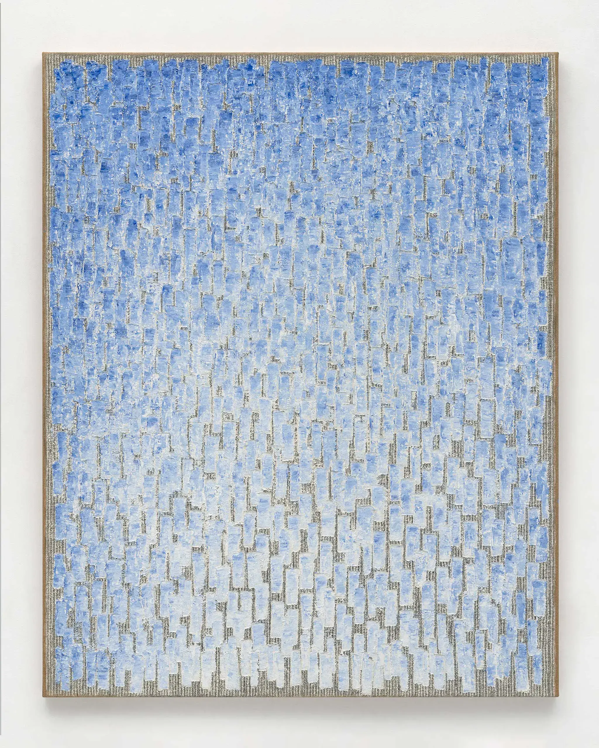In this exhibit in Provence, Ha Chong-Hyun presents twelve Conjunctions, his signature works on burlap. Conjunctions refers to a series that the artist began experimenting with fifty years ago, employing a process called bae-ap-bub, or back pressure method. It entails repeatedly pushing and pressing paint from behind the rough hemp, allowing for it to bleed through and create textured surfaces.