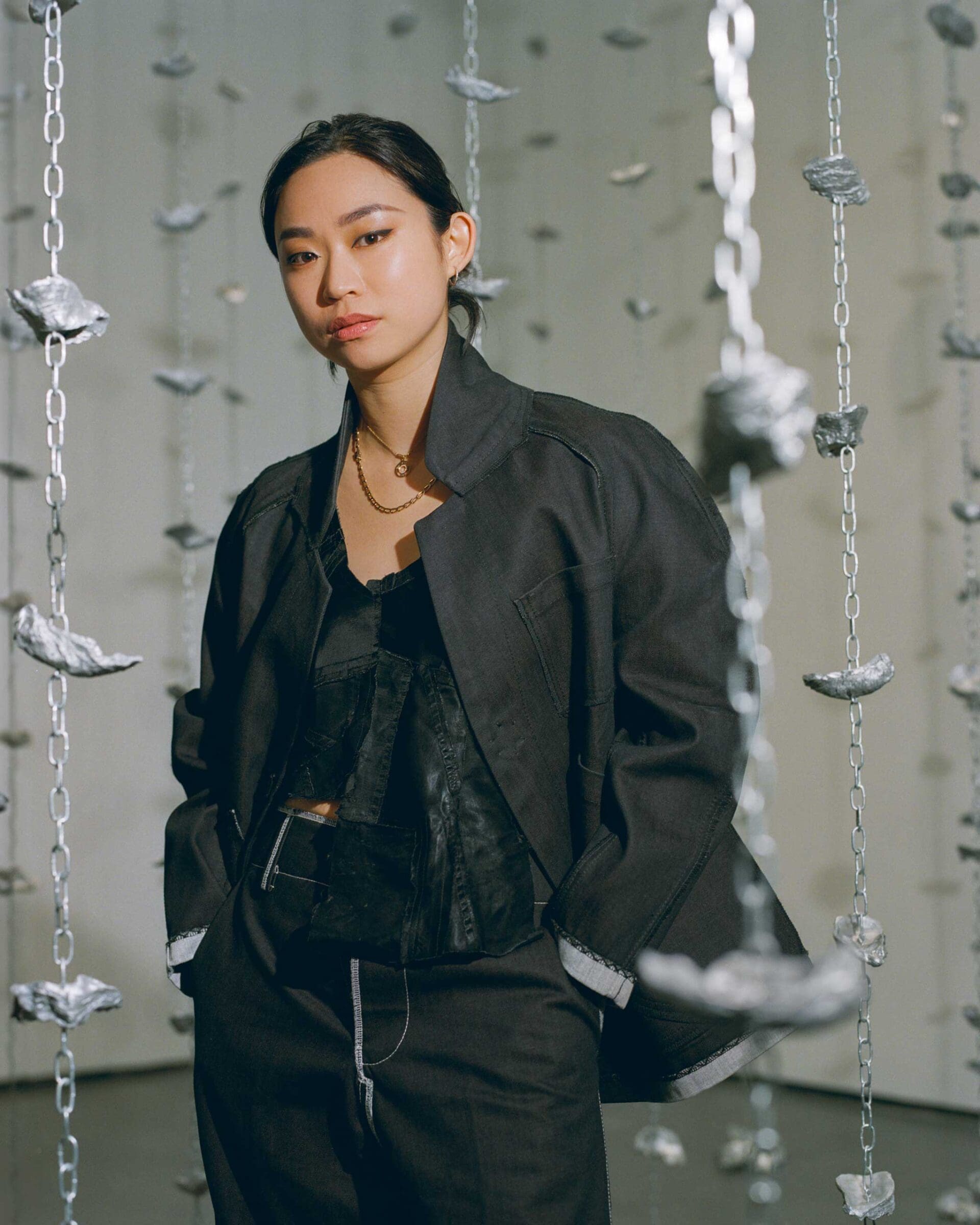 The entire installation was made using five real Philippine-grown oyster shells that I had sourced with the help of Jordy and May Navarra from Toyo Eatery who are friends and frequent collaborators on a variety of projects. I sent molds from 5 original shells to the UK then had them cast in aluminum just outside London into an edition of 600 which I strung together with chains mimicking oyster farming techniques in the Philippines as well as echoing the working of one of my favorite artists, Felix Gonzales Torres. It is illegal to ship shells out of the Philippines, nor did I even consider it necessary to the work. I liked the challenge of creating an immersive space with a couple shells handed to me in a single envelope, inexpensive materials and hours of patience, blisters and bandaids.