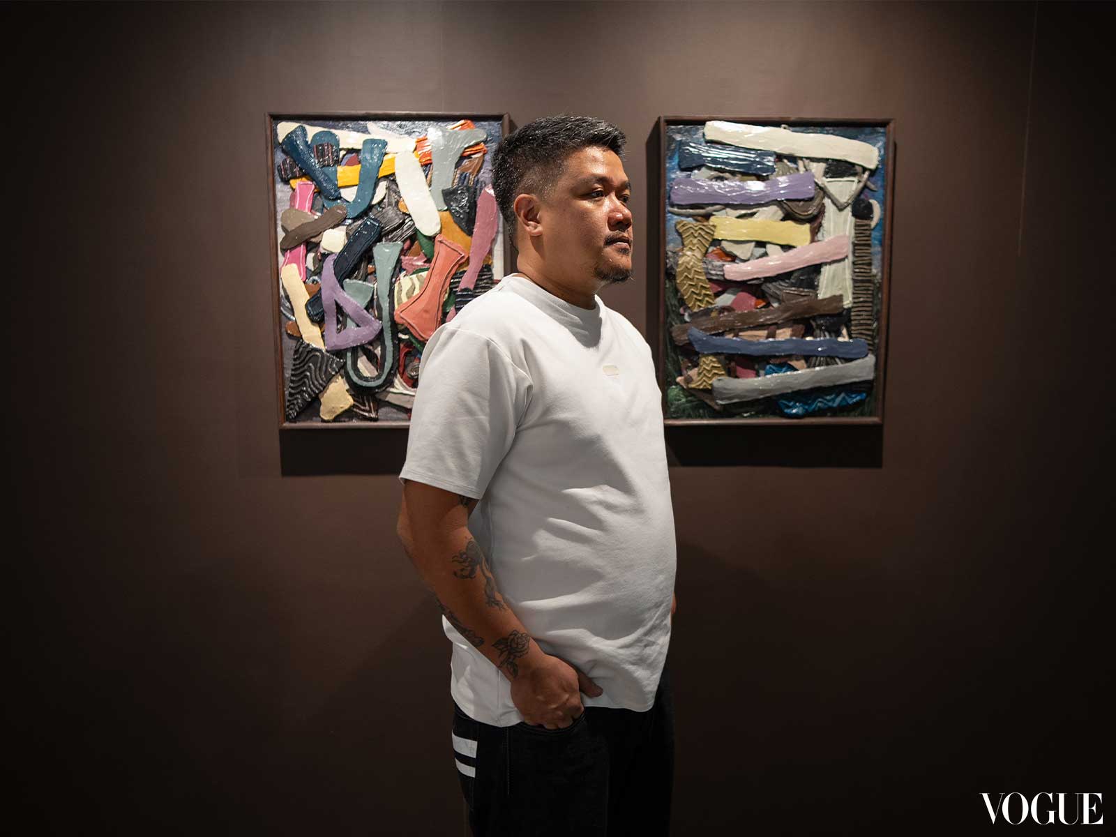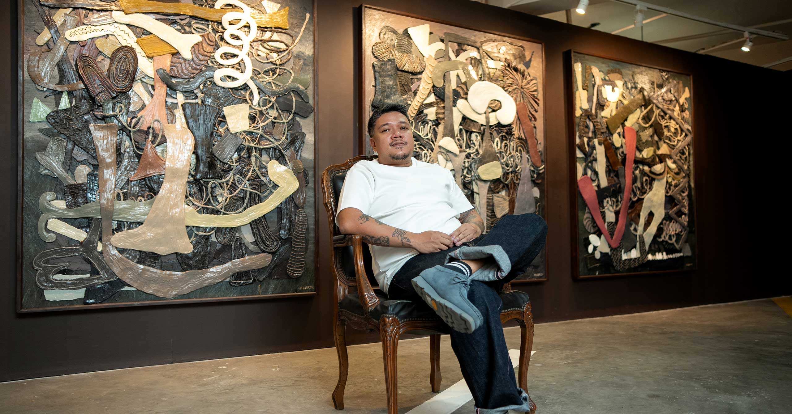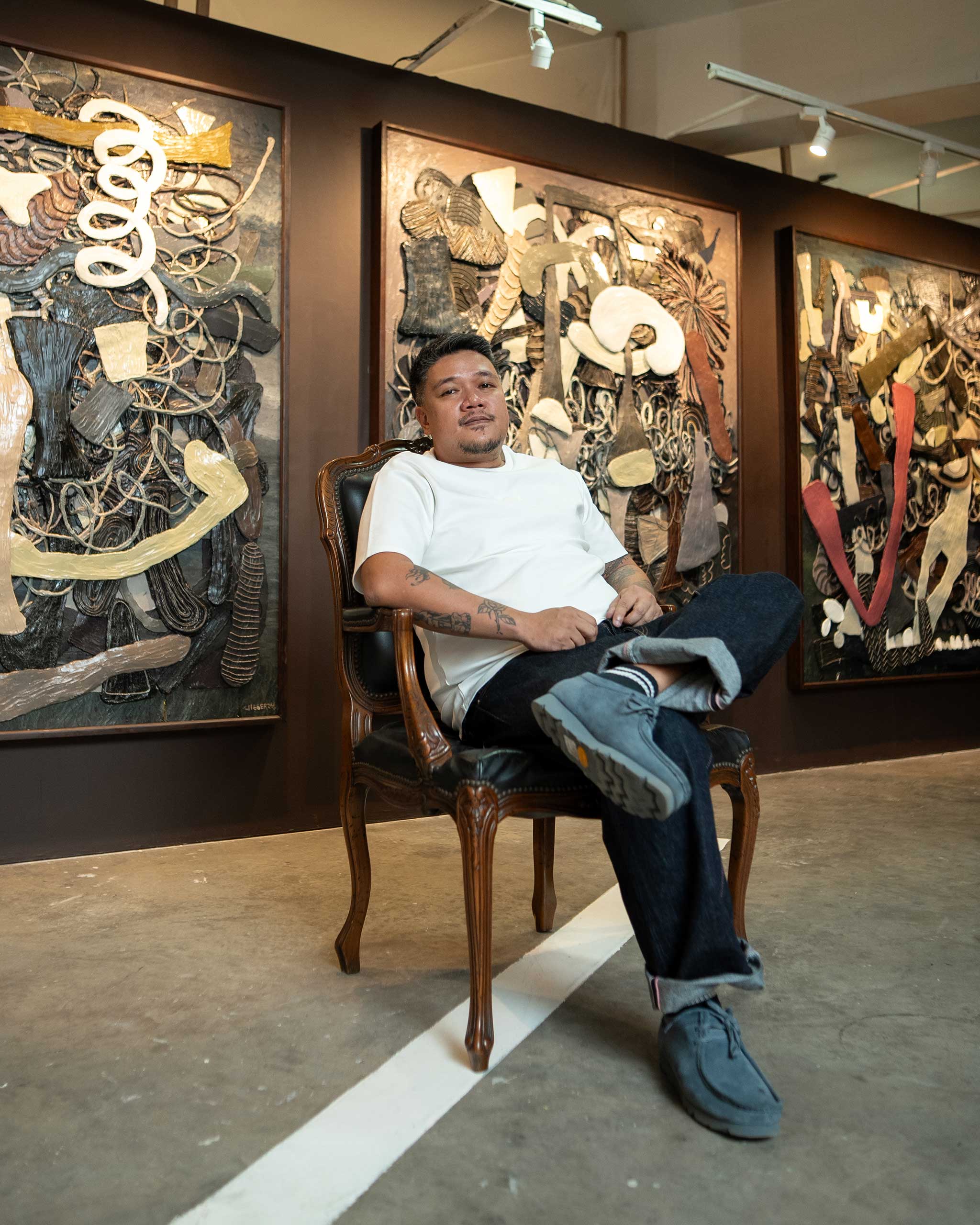 Artist Jigger Cruz showcases his ‘Dialectic Disruptions’ exhibit at Art Fair Philippines 2024. Photo by Kieran Punay