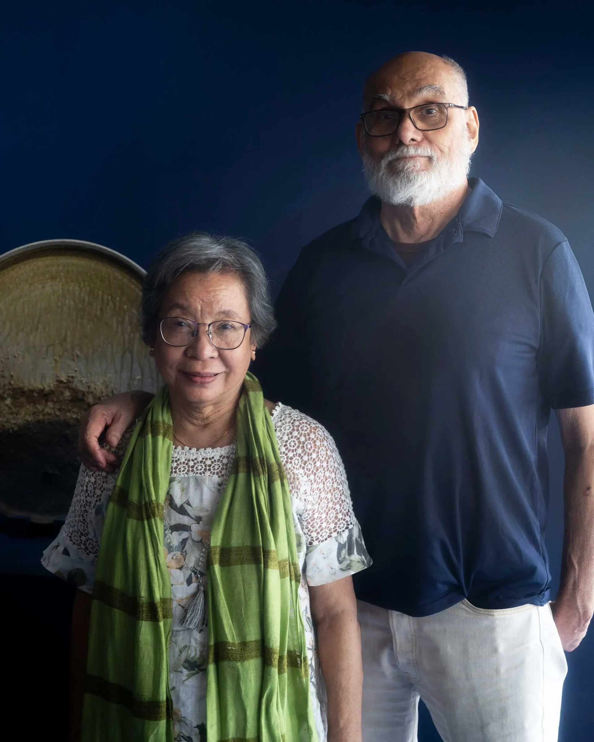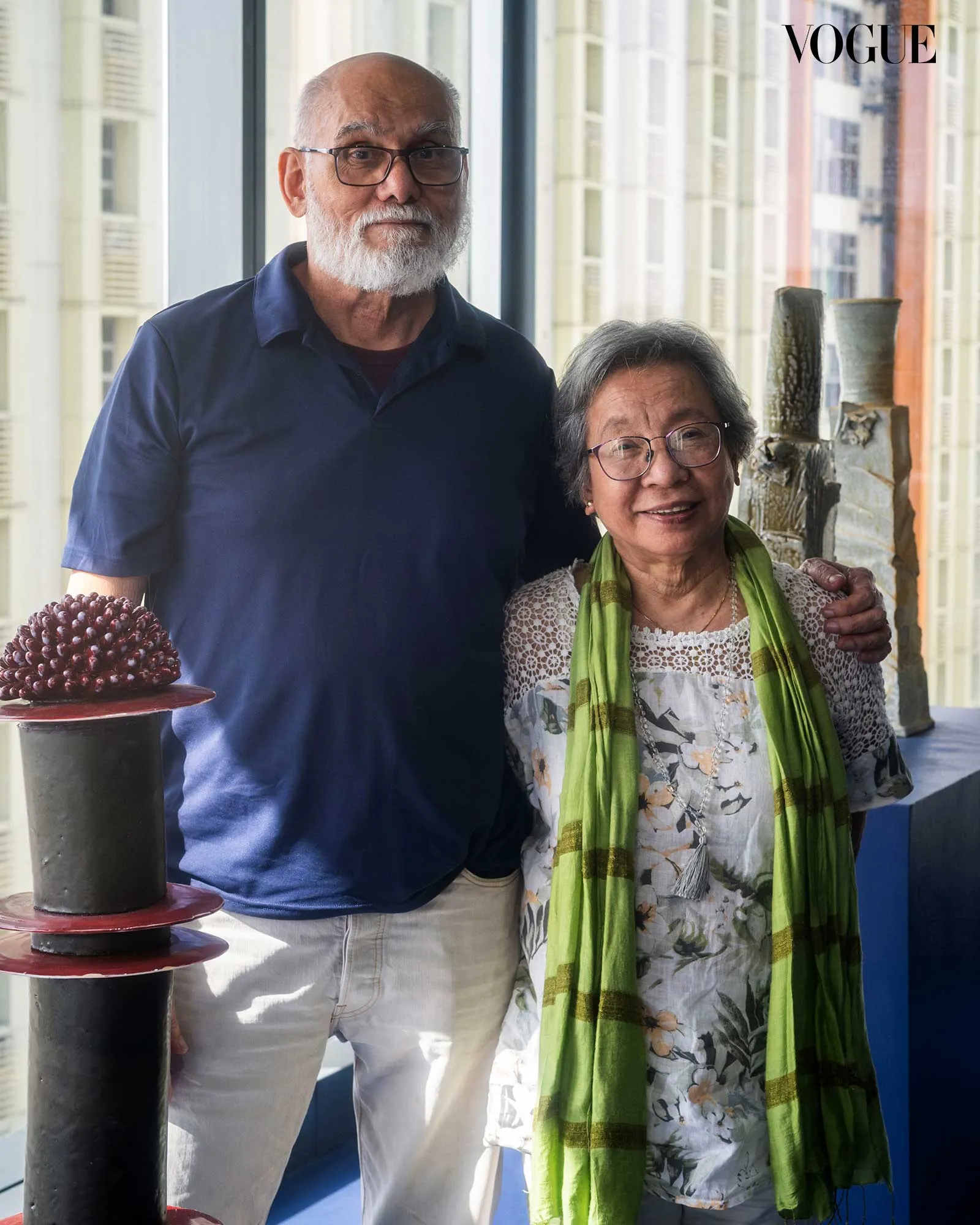 Set against the Makati skyline, Jon and Tessy Pettyjohn showcase a forest of ceramic columns in their Art Fair Philippines 2026 exhibit, “Intersect.” In this collection, the couple explores the contrast, similarities, and intersections between their works. “We don’t often get to show our works contrasting like this,” Jon says, looking at the ceramic towers by the window.