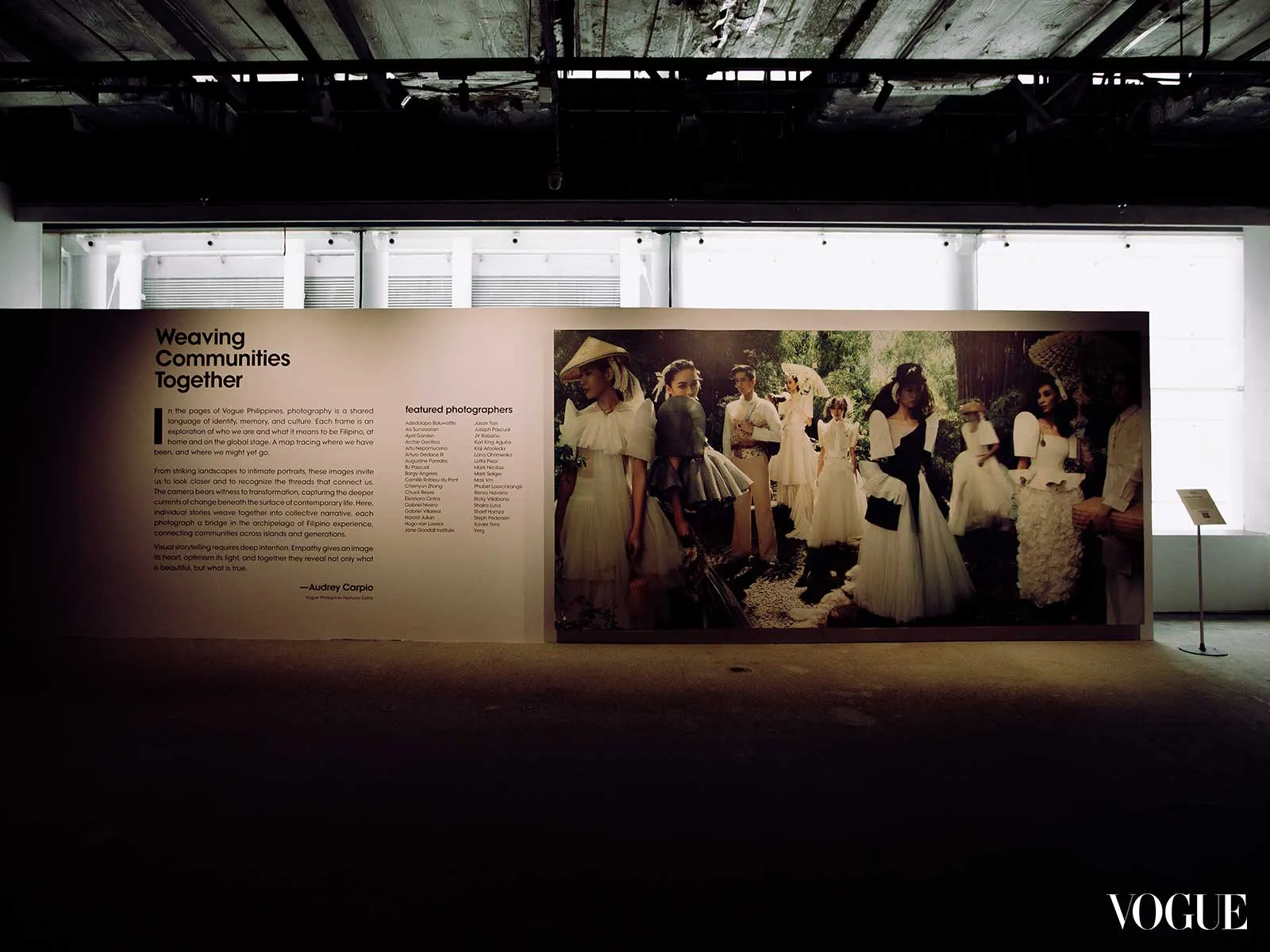Also included in the exhibit is a triptych-like piece that features Laura Jhane, Jo Berry, and Jon Santos, contemporary subjects whose portraits struck Migs as beautifully classic; a stud frame structure that echoes the rawness of the venue, and which people can enter to view images for sale, benefitting young Filipino designers at the F.A.B. Creatives school; a viewing room where guests can watch videos from across Vogue Philippines’ media channels; and more.