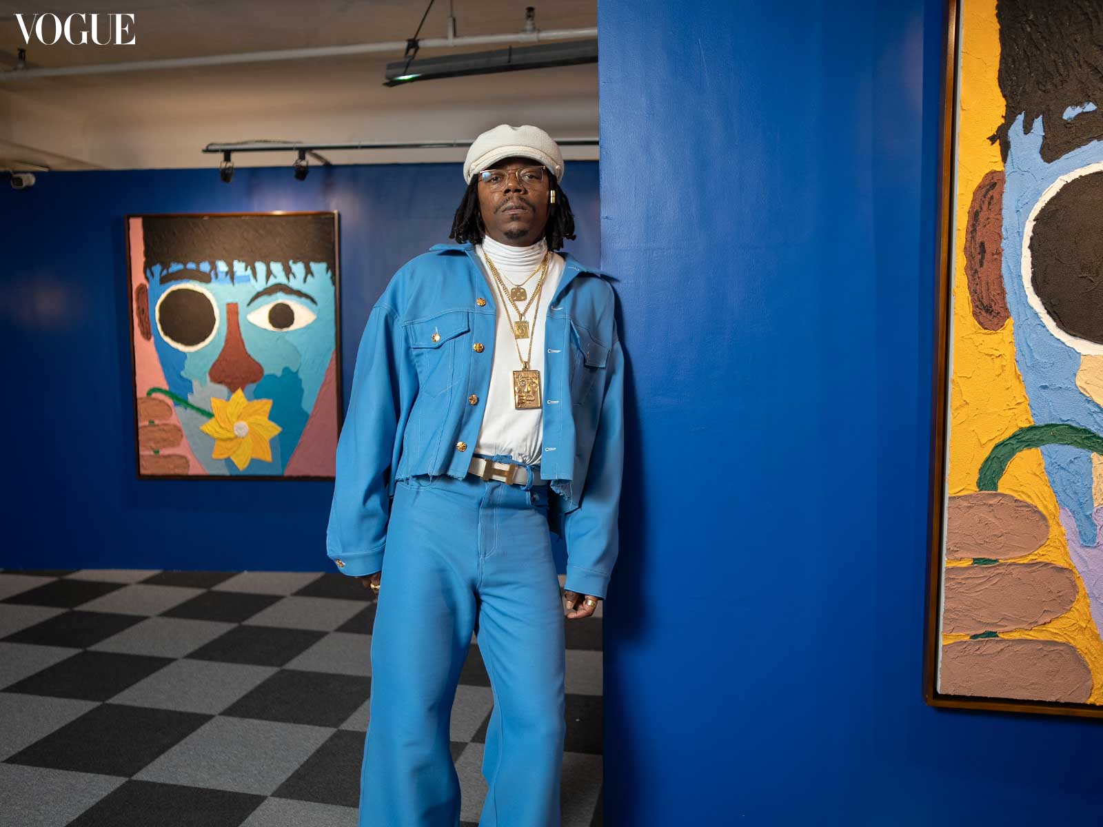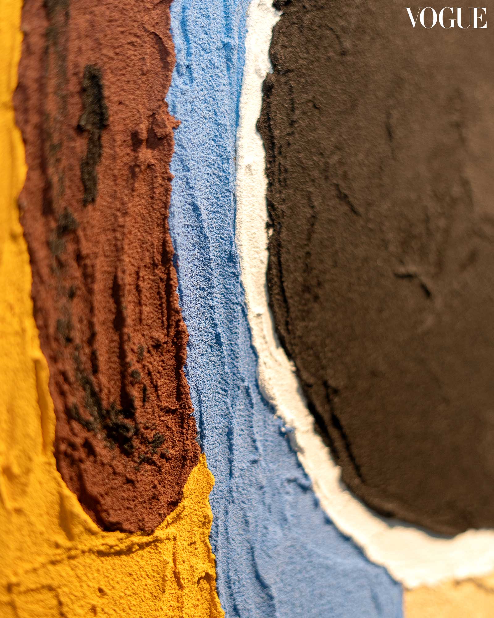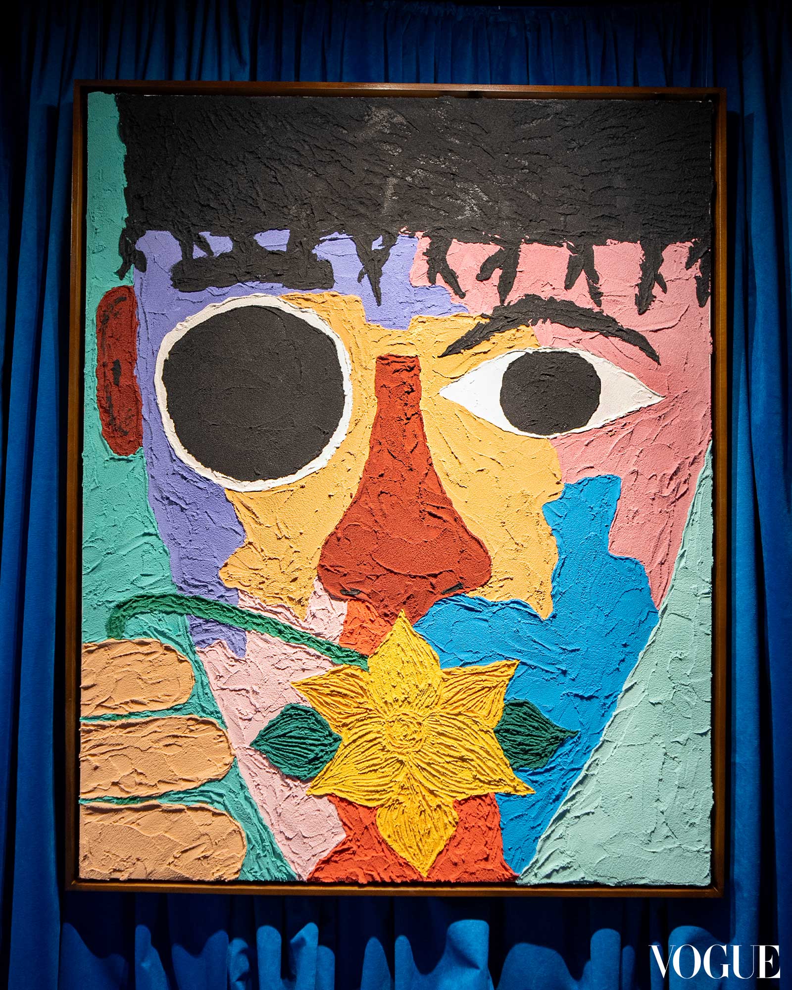 He worked with production designer and theater director Ed Lacson, Art Fair’s 7th-floor exhibition designer, to construct the space. He explains that while blue is a practical color—making the colors in Star’s paintings pop—it is also a meaningful one. “For me, blue is memory,” he tells Vogue Philippines. “If you think of a room that you like or a food that you like, you don’t remember the entire space, right?”