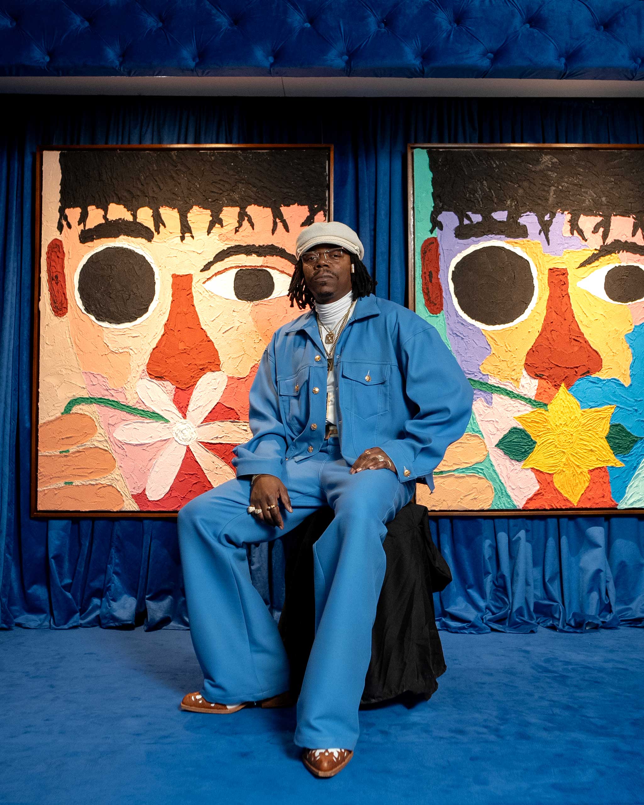Star will premiere the Loverboy series in the Philippines at the annual Art Fair, in a space completely awash in Yves Klein blue. There is a space for a stage, upholstered in velvet, and brass fixtures inspired by saxophones. Star explains the thought behind the space: “Opting for the speakeasy immersive space was a deliberate choice, resonating with Loverboy being a saxophonist—his workplace where he shares the energy of love and music. The blue hues symbolize Loverboy’s persistent mood to overcome challenges, serving as a reminder that with genuine self-love and tenacity, one can conquer anything.”
