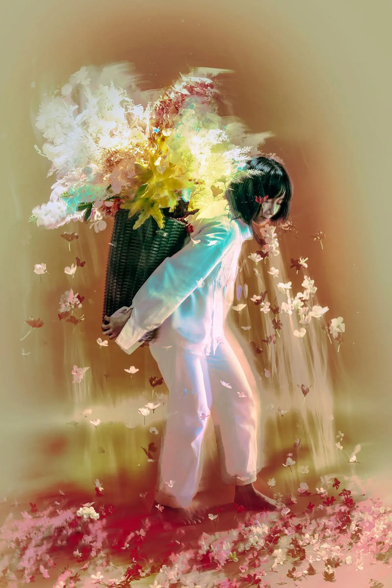 This photograph is part of the series Keep My Heart, an experimental photographic process that uses photography to connect psychology, sociology, and fashion with mystical folk elements of Vietnamese culture in particular and Eastern culture in general. At the same time, it is very close to the global social upheavals taking place. The work aims to understand the contrast between the subconscious and unconscious worlds of young people living and working in Vietnam between the ages of 20 and 30 and their external, conscious expressions in fashion.