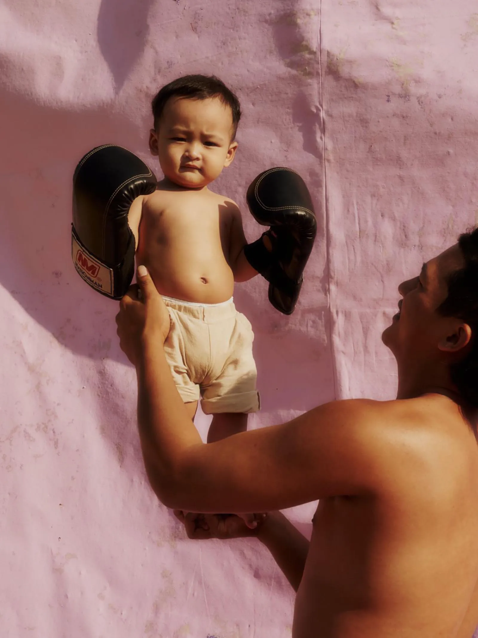 This photograph is part of the series Mongkol. These tender portraits reveal the boys beneath the fighters at a family-run Muay Thai gym.