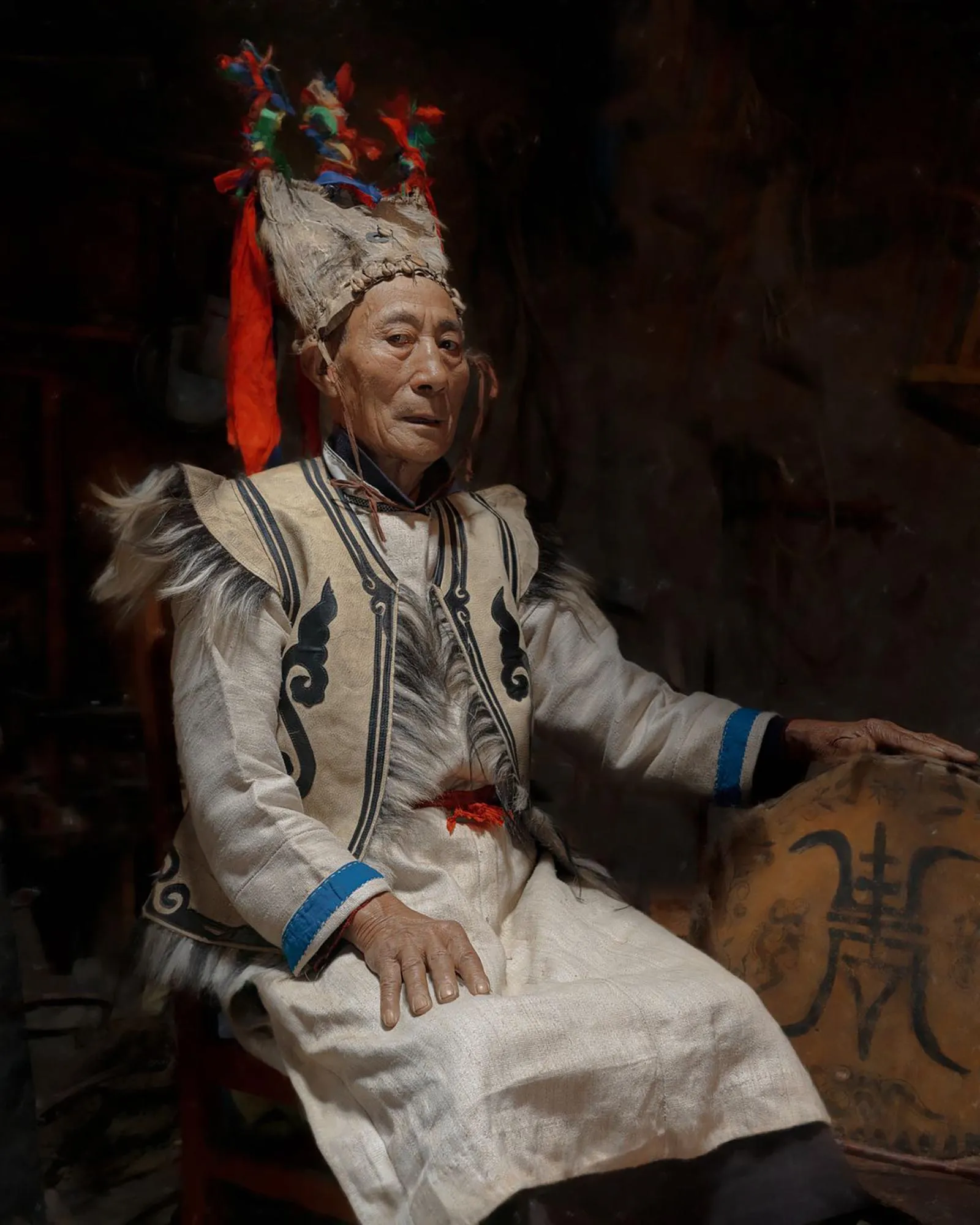 This photograph is part of the series Dou Anzhu. A sequel to The Mountains of the Qiang, my Dou Anzhuroots in Wenchuan’s Qiang culture (Sichuan’s Aba Prefecture), home to this ancient ethnic group—one of China’s origins. Central to the work is Dou Anzhu, a revered ancestor. His love with Mujiezhu (the daughter of the god Mubita) survived divine trials; their union and earthly descent embody Qiang virtues, carrying ethnic origin and love meanings. Dou Anzhu’s 80-plus images feature Qiang wizards and rituals—figures closest to gods and the core of the ethnic spirit.