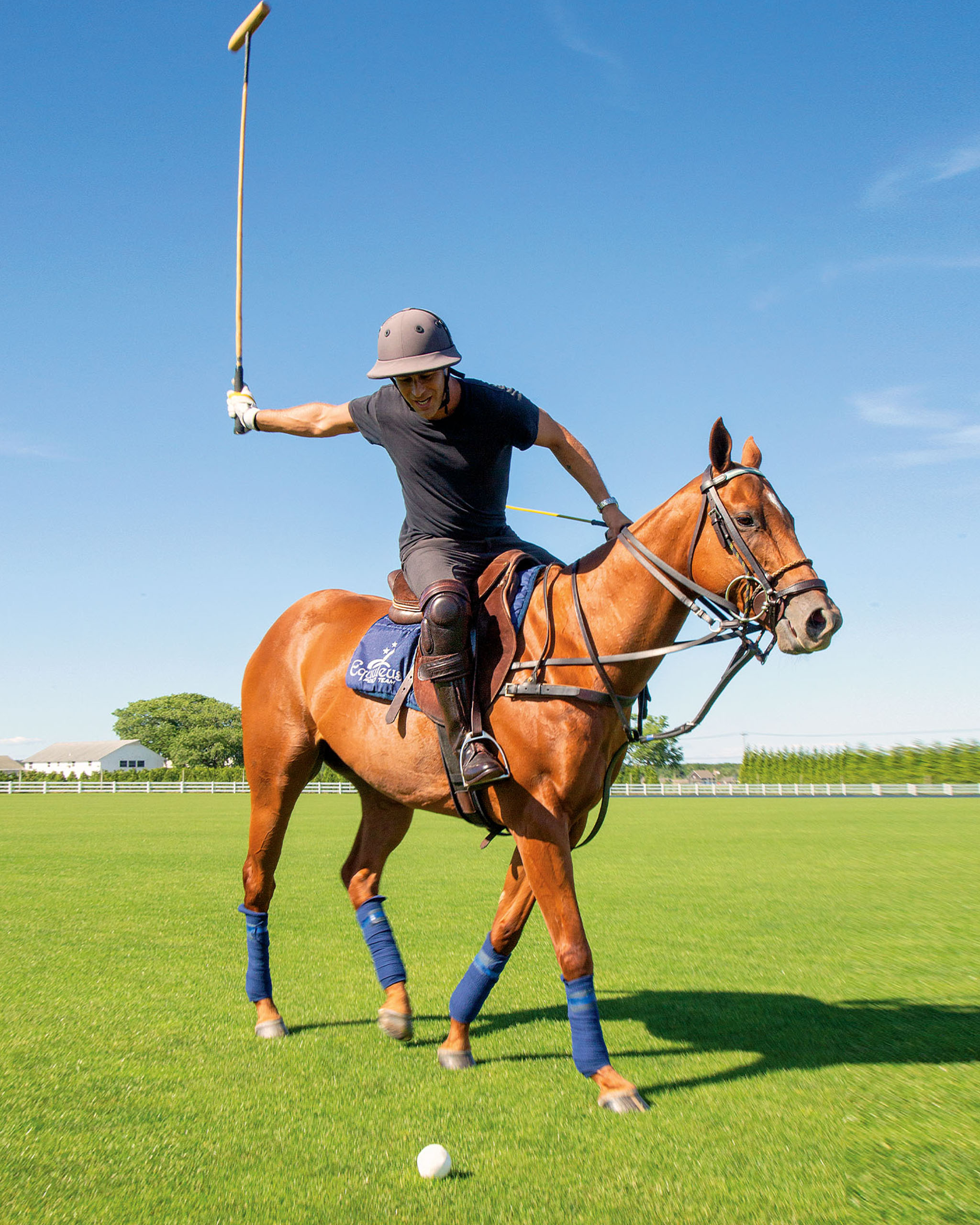 It was only a matter of time before Blue himself fell in love with the equestrian life distinct to the Hamptons. “What I enjoy the most is connecting with the horse, learning to trust, and feeling of freedom when cantering around an open field,” he intimates. Equine passions and time spent on the saddle have influenced his personal style and way of living. “In terms of fashion, I find that my day-to-day colors of white, navy and khaki are pretty much the colors of the equestrian world. I go from a riding lesson to running errands in pretty much the same outfits when I’m in the Hamptons.” When designing spaces, Blue has also begun to integrate his love for riding into his creative expressions. “Horsey elements add a certain flair and connection to surroundings,” he observes.