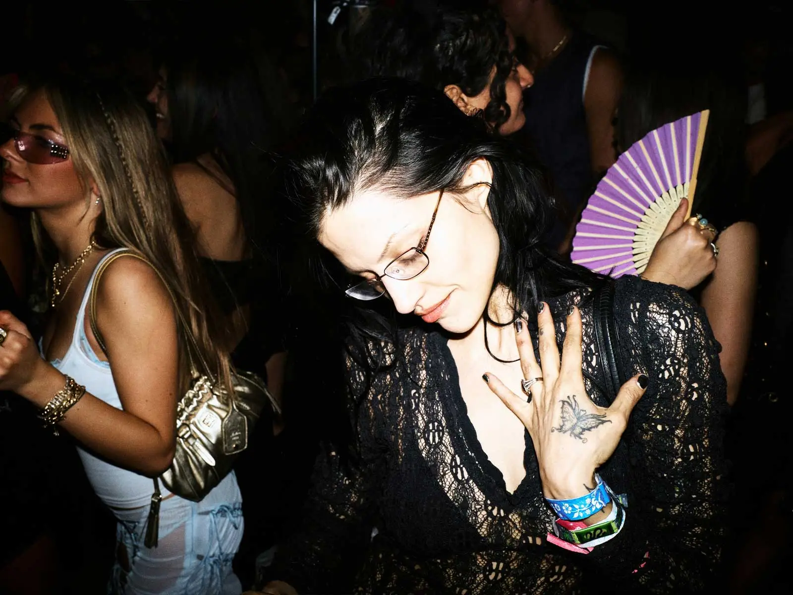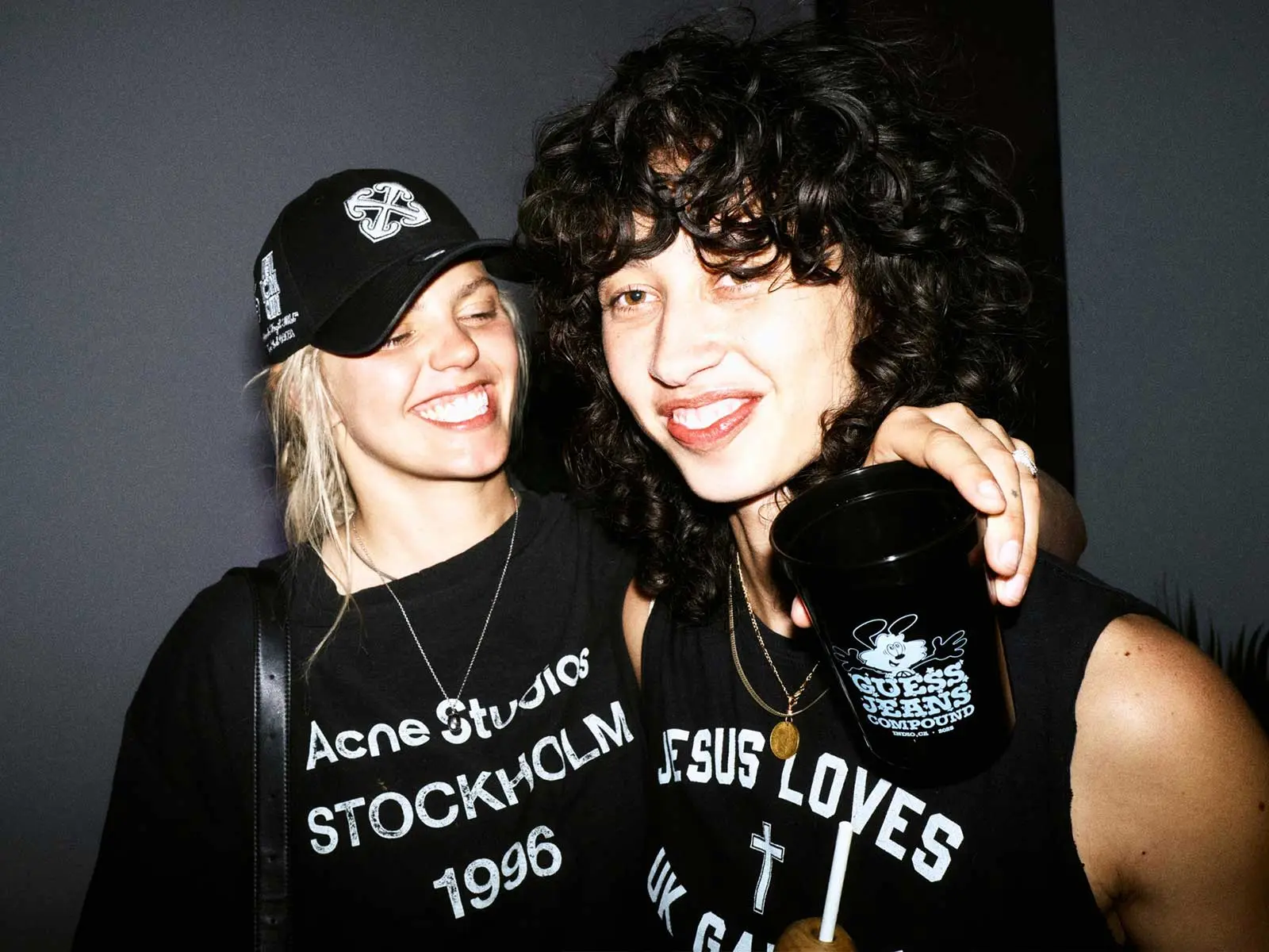 As the evening progressed, Charli XCX—fresh off performing on the Coachella mainstage with special guests like Sivan, Lorde, and Billie Eilish—took to the DJ booth with her fiancé, George Daniel, for a special intimate set. Naturally, even the coolest of party guests couldn’t help letting loose when the pop star spun her own songs, including “Guess.” (A fitting song choice, given the bash was at the Guess Jeans compound.) A mini private Coachella performance for some of her closest friends? Very brat of Charli.