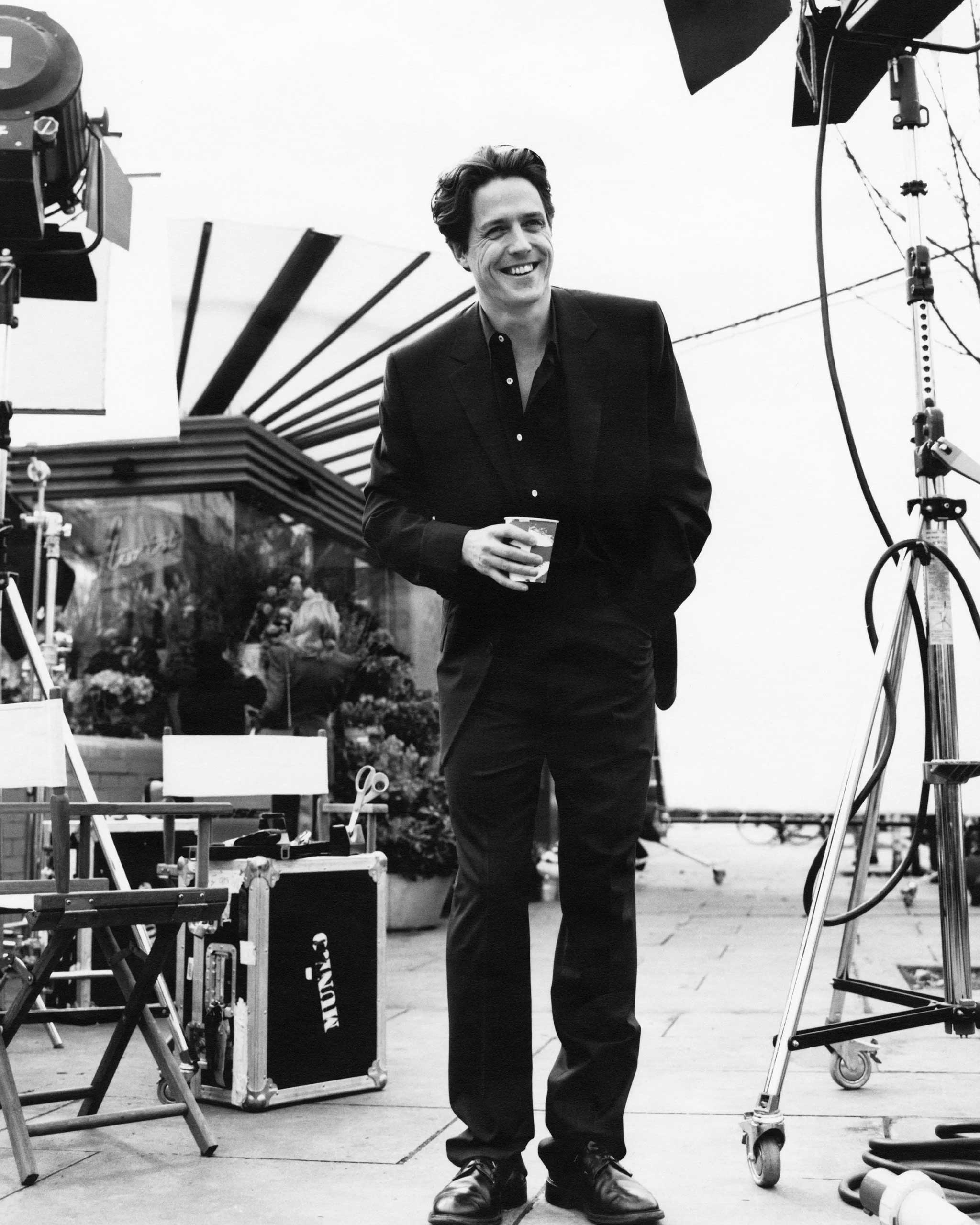It’s a gloomy London Sunday evening and I’m standing on an empty street in South Kensington feeling like the rest of the world has gone away for the weekend, when a big black Mercedes pulls up beside me. The electric window rolls down, and a man’s head emerges. “Hello?” he says inquiringly. I know that the man is Hugh Grant, because we have arranged to meet outside his office, but something doesn’t seem quite right. Maybe it’s just the way he’s parking the car – not in the first available space, but further up the street, as if he fears being followed, or maybe it’s the way he’s walking back towards me, almost limping, with one hand on his back as if in pain. Whatever, this man in a stern black Hackett coat doesn’t look like the bouncy, bright-eyed Hugh Grant that I have seen bounding about on screen, but I follow him anyway as he unlocks the front door and edges upstairs to the suite occupied by Simian Films, the production company that Grant runs with his partner, Elizabeth Hurley.
