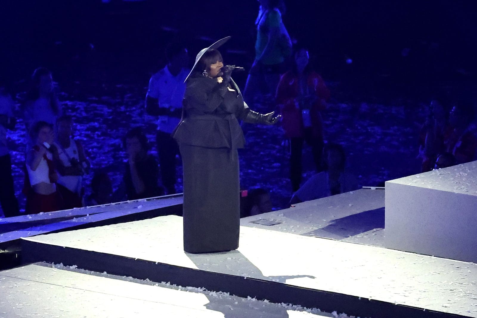 In a nod to the next Summer Games, which will be held in Los Angeles in 2028, Paris mayor Anne Hidalgo passed the Olympic flag to Los Angeles mayor Karan Bass, accompanied onstage by American gymnast Simone Biles, who won three gold medals and one silver medal in Paris this year. Shortly after, H.E.R. stepped out to perform “The Star-Spangled Banner” (with her signature guitar, of course).