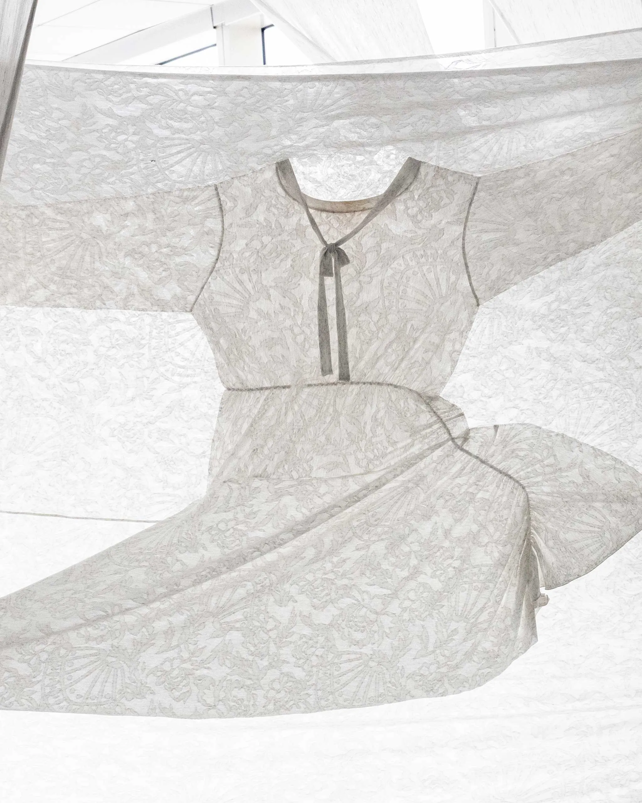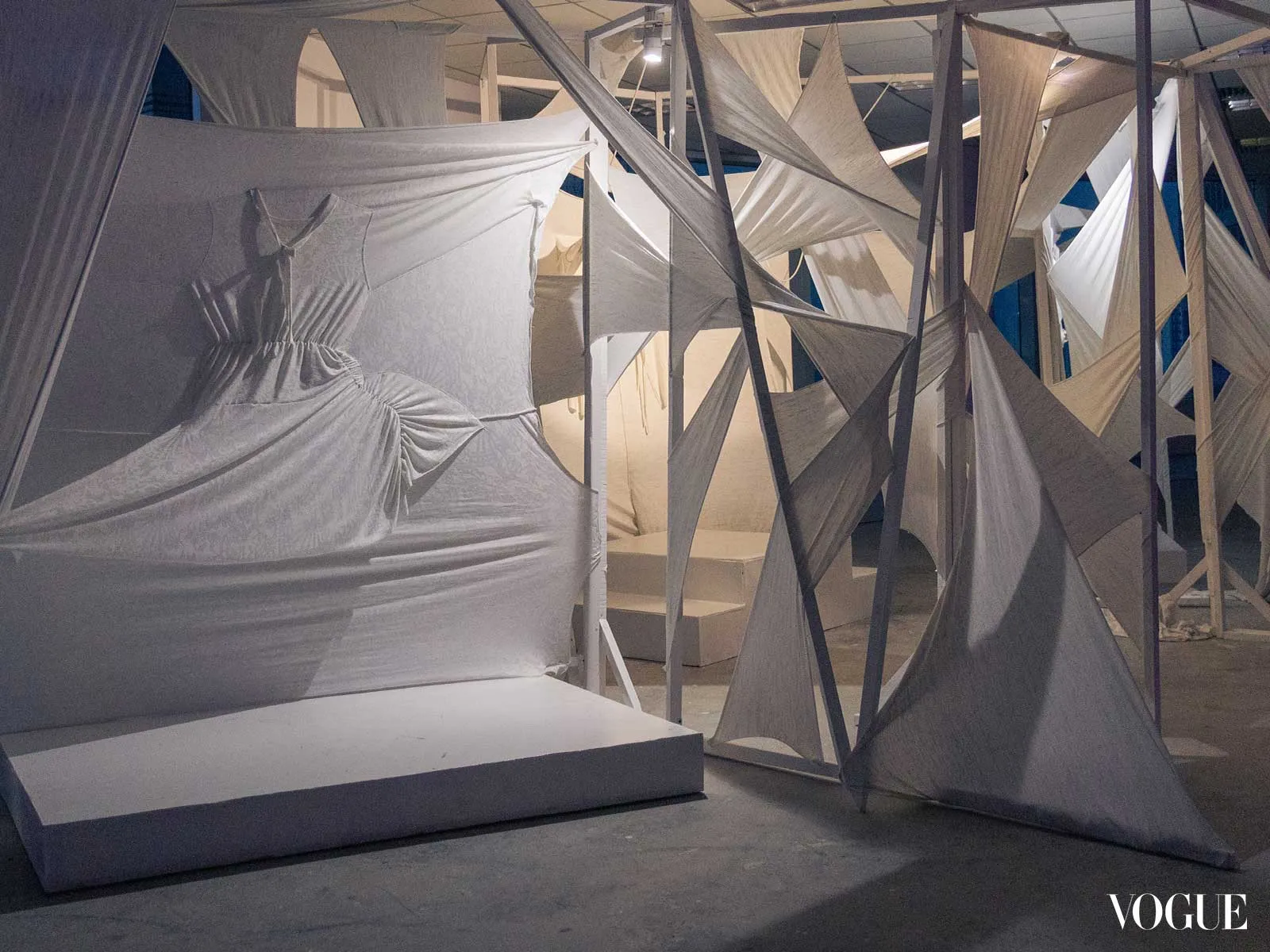 The next installation on the tour is reminiscent of the flurry of fabric that comes and goes in between costume changes. Jersey and the Body by Novel leads you through a choreography of dressing and undressing with jersey textiles fastened to large frames that play with weight and tension. Members of the audience who try on the costumes sewn into the fabric walls slip their bodies through the “clothes” and find themselves stretching and moving in different ways.