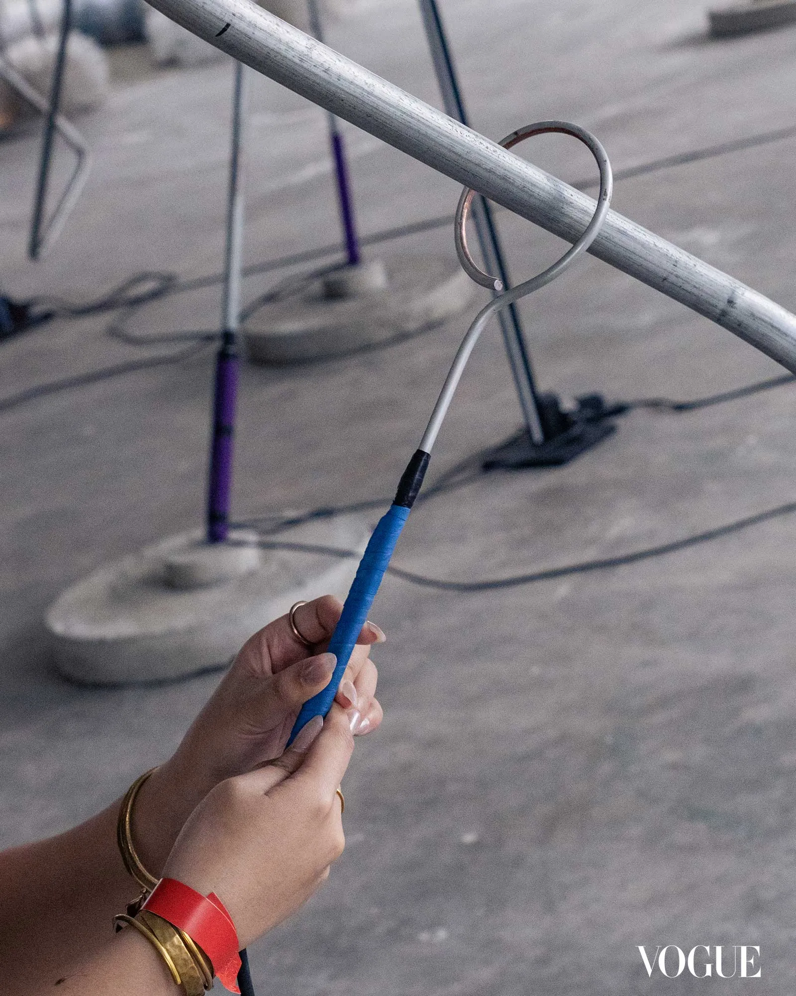 Buzz Off by artist Marco Ortiga deftly toes the line between dance and play. In a series of wire sculptures reminiscent of old carnival games, players are tasked to bring a metal wand through one end to the other, careful to not touch the sides of the sculpture, or they will have to start from the beginning all over again. The players become dancers tethered to the wires that act like a cheeky partner forcing them to move in unusual, yet careful ways.