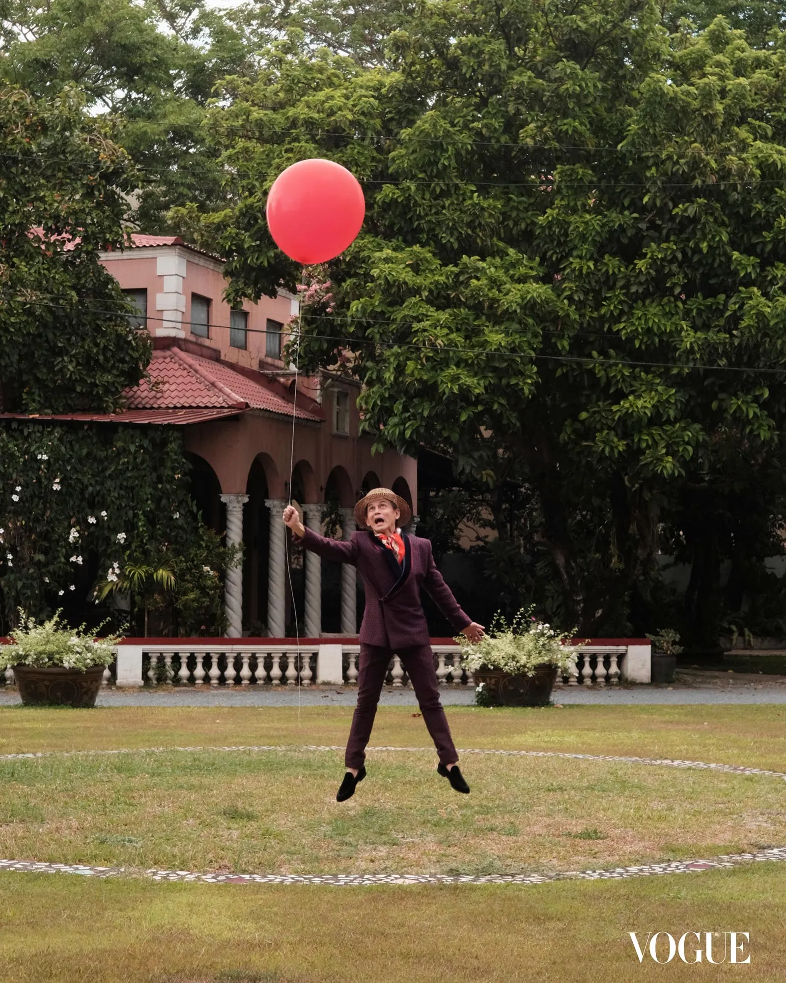 While he appears to be in his usual element, Santos describes the shoot as a “new adventure.” “I decided to snap out of my default mode, which was ‘fish-out-of-water,’ this is ‘too-good-to-be-true,’ and ‘What am I doing here?’” he says. He expresses to deputy editor Pam Quiñones that he had never been shot this way before; he had always been asked to be in drag in photoshoots.