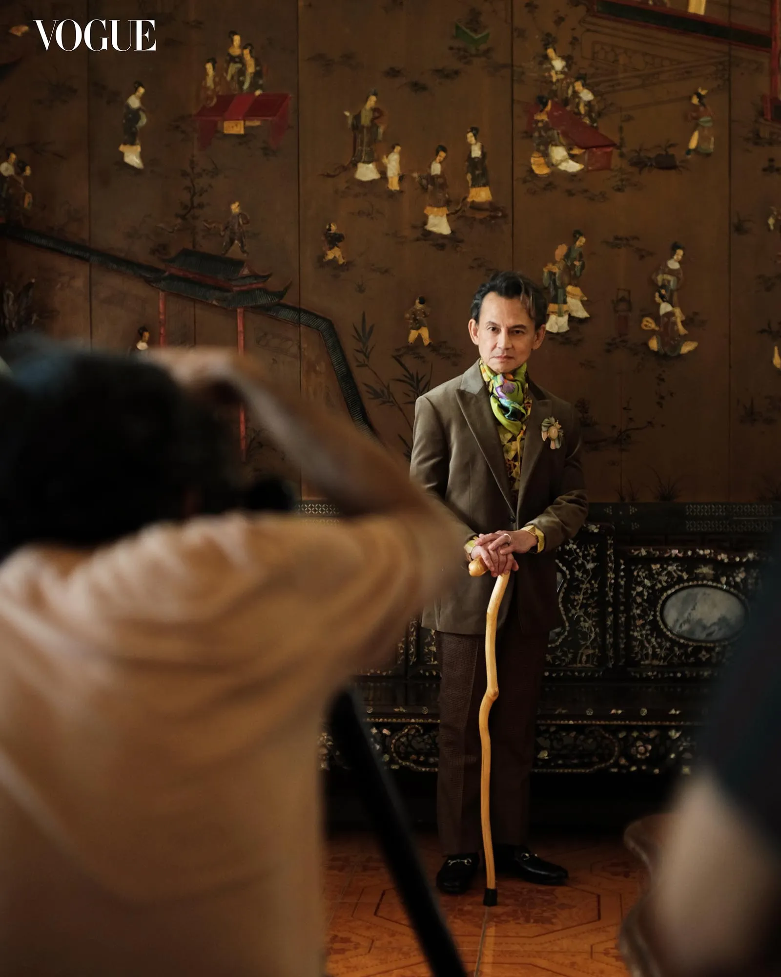 “But in a way, fashion is drag,” Quiñones says. With a vision to see Santos like “we’ve never seen before,” the fashion direction dresses the actor as a dandy. “He is an institution in comedy, drag, and a master in impersonation, and we thought that there is quite a parallel narrative to dandyism,” she says.
