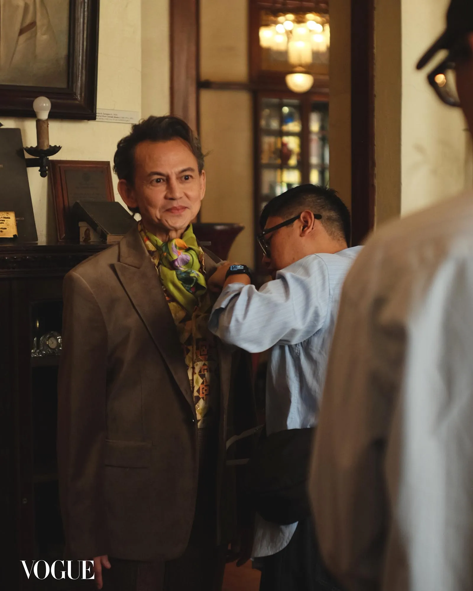 Perhaps there has not been as much laughter heard on set as when Jon Santos did his first shoot with Vogue Philippines. Through his different facial expressions and mini-improvs, the actor, impersonator, comedian, and writer lit up MiraNila Heritage House and Library, just as he does any stage or screen.