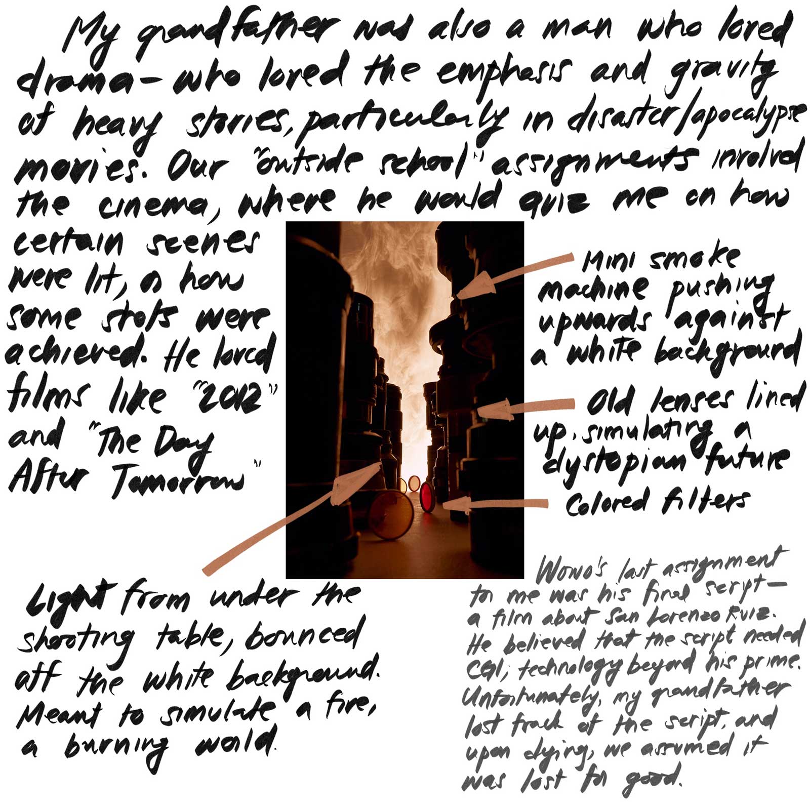 Wowo’s last assignment to me was his final script: a film about San Lorenzo Ruiz. He believed that the script needed CGI, technology beyond his prime. Unfortunately, my grandfather lost track of the script and upon dying, we assumed it was lost for good.