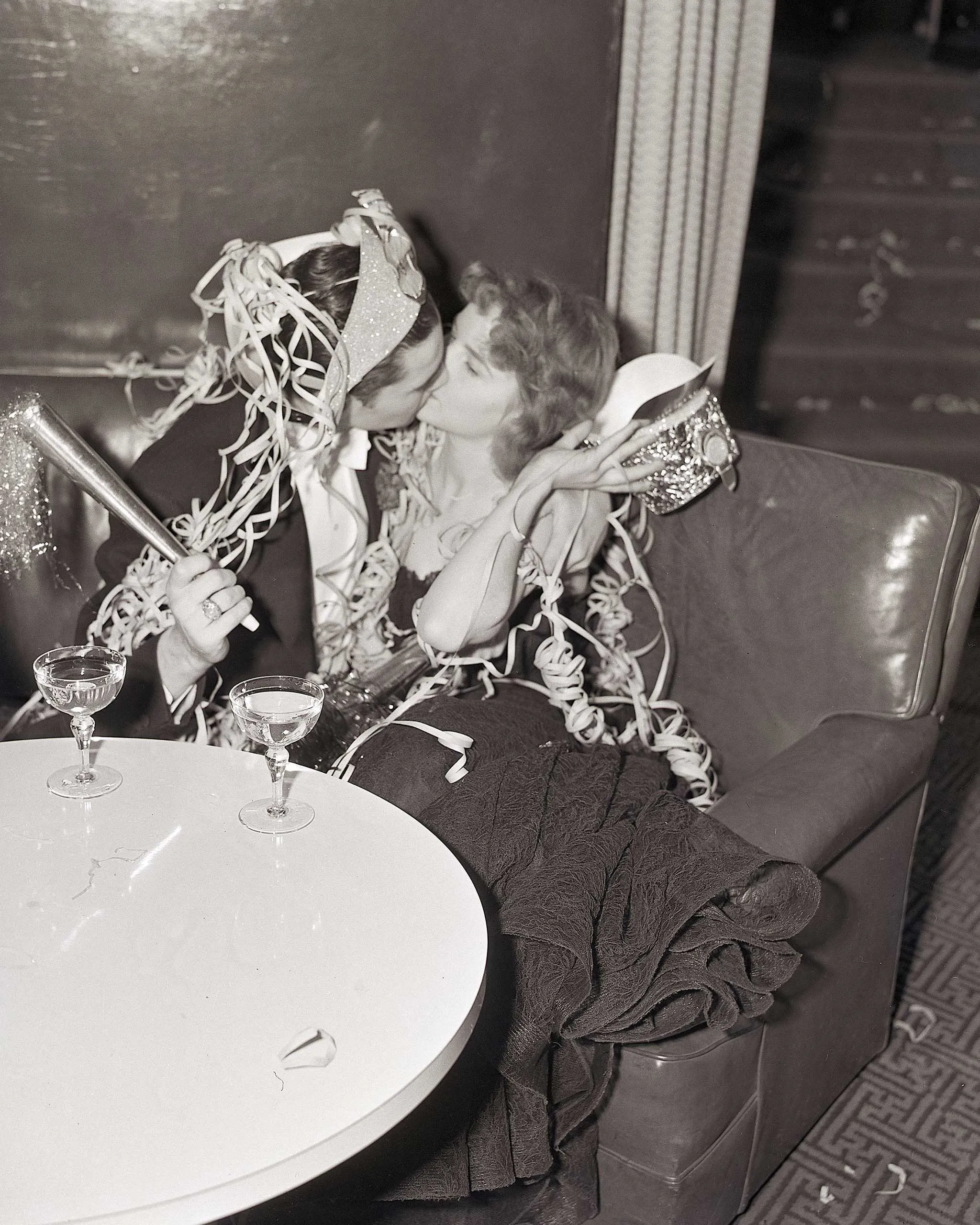 Eventually, Saturnalia merged with the 12-day-long Christian celebrations of Christmas, which traditionally stretched past the New Year. However, the vibe didn’t get any tamer—in fact, in medieval times, the season was believed to have been nearly as wild as it was during pagan times, with plenty of public intoxication and frivolity. “In medieval Europe, the kissing tradition evolved out of masquerade balls where midnight unmaskings were punctuated by a kiss to cleanse and thereby secure a year of good fortune,” explains historian Ralph E. Long of Academized. “The kiss had become a means of protecting from loneliness or tragedy, and guaranteeing a new beginning in love and intimacy.”