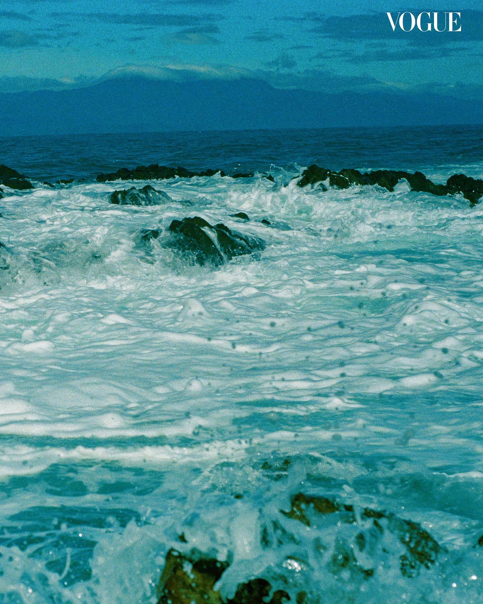 To create an edition of Pearls, Geotina usually directs and photographs the lifestyle and land shots, while a local surf photographer captures the surf sequences. “I don’t shoot in the water, I would love to learn how, but it’s kind of an effort,” he admits. “So I hire a local photographer who I respect and whose work I love. For me, Pearls has always been a collaborative endeavor.” With Baler, he contacted Marie Cabel, a surfer who became both muse and behind-the-lens talent, all the while pregnant, repping the future generation.
