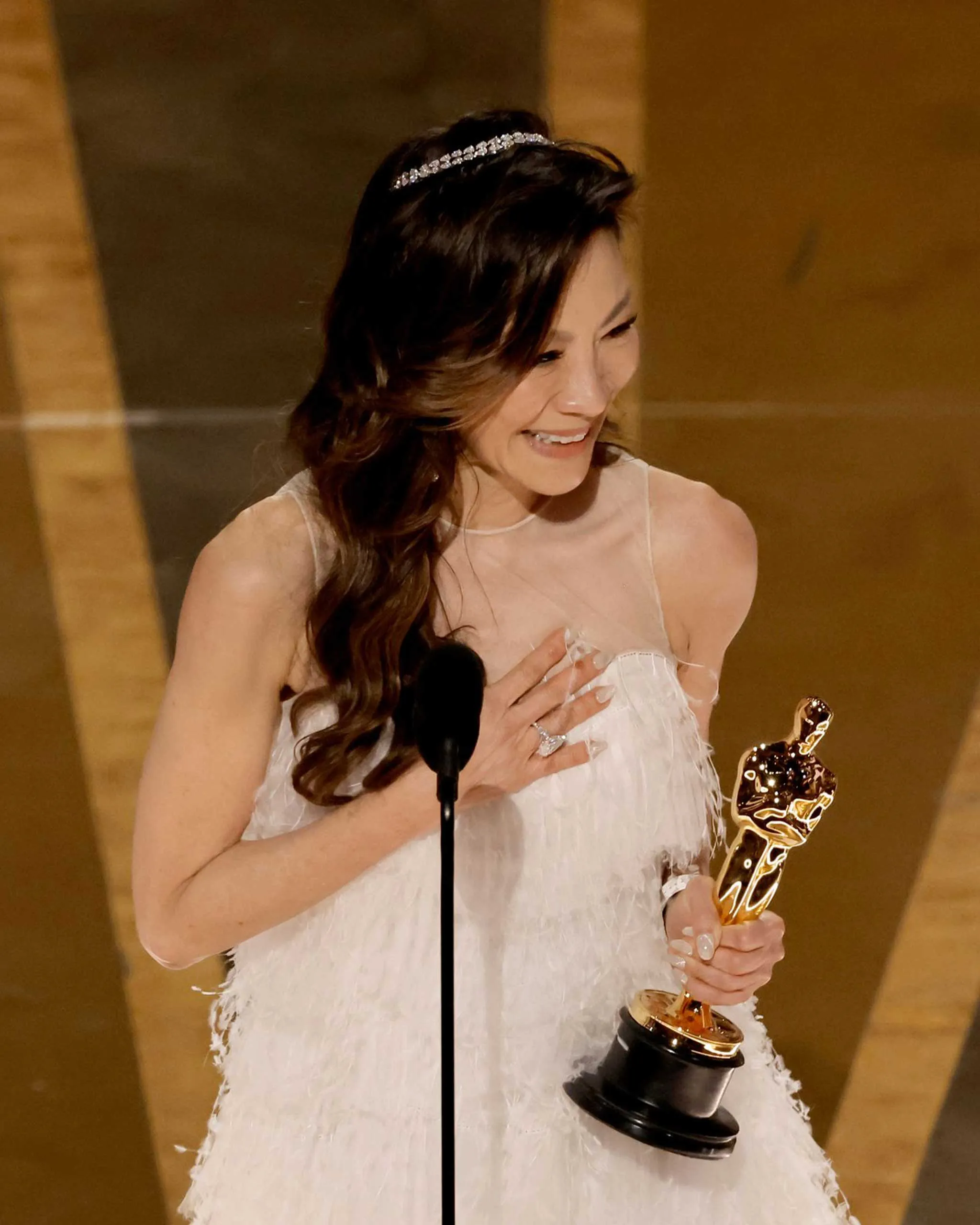 Michelle Yeoh accepts the Best Actress award for “Everything Everywhere All at Once” Photo: Getty Images