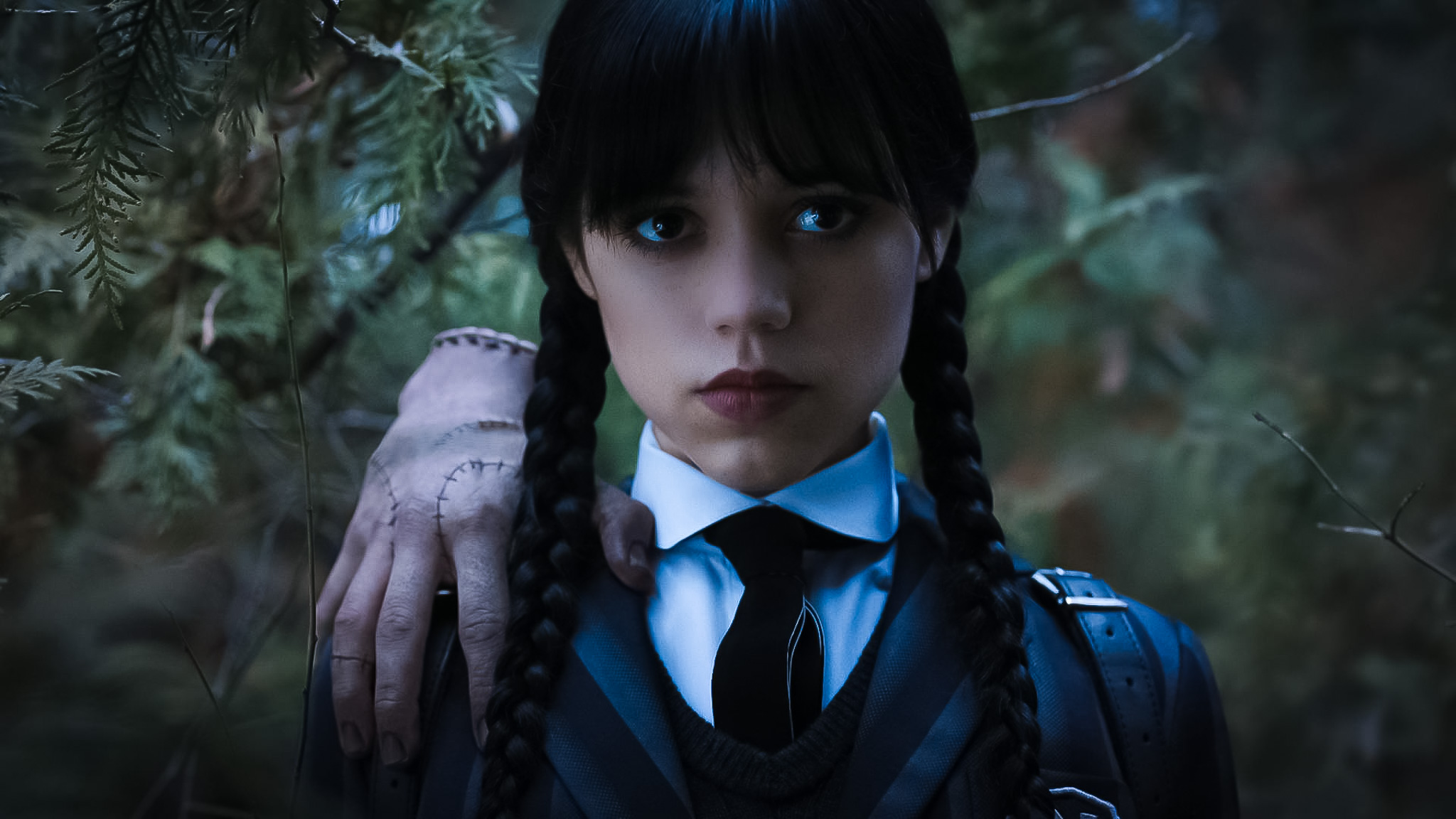 Wednesday. Jenna Ortega as Wednesday Addams with Thing. Courtesy of Netflix.