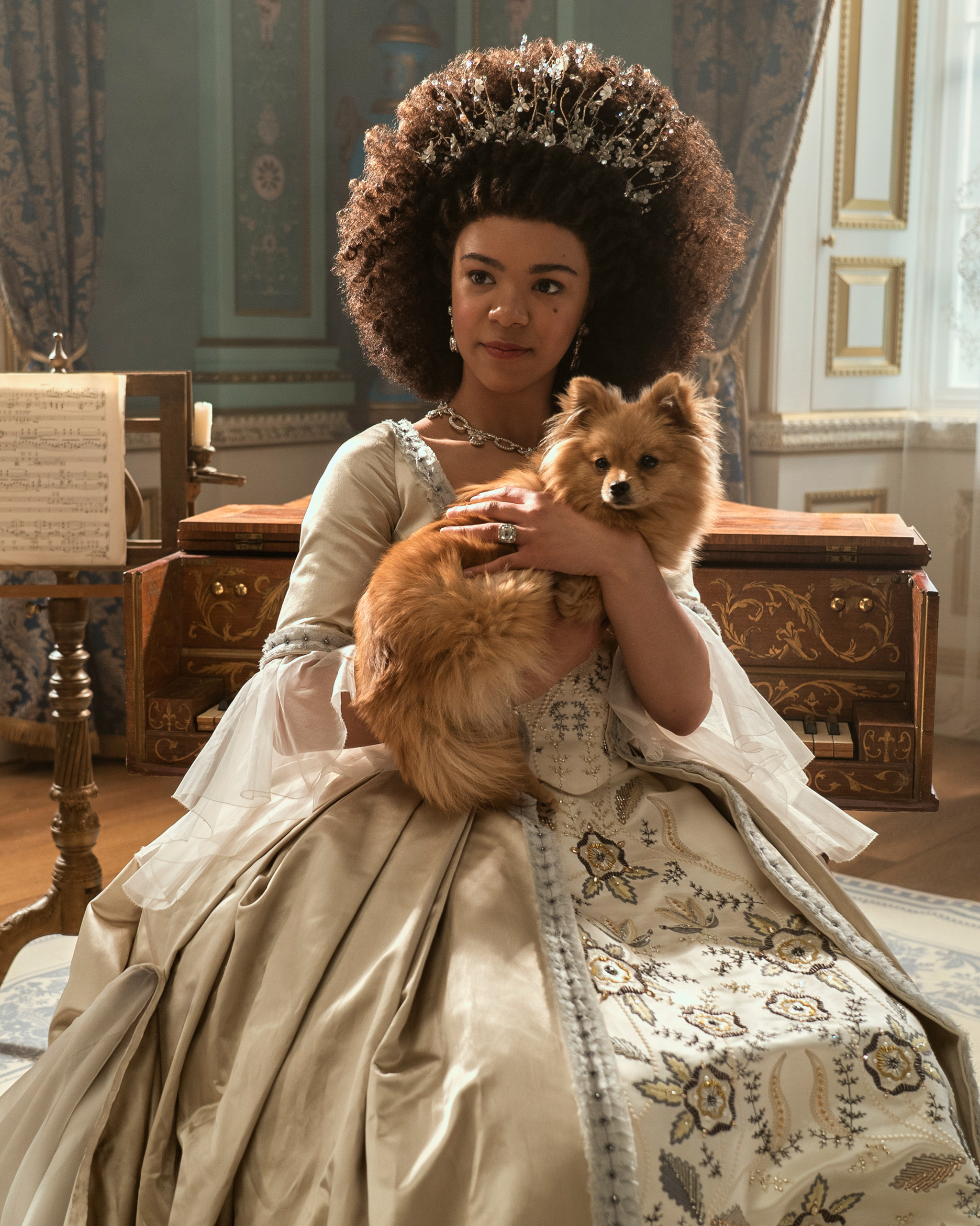 The first teaser for the series dropped on 14 February—and it has raised expectations even further. It shows an apprehensive Charlotte arriving at court and meeting the handsome King George for the first time. We then see the pair exchanging secret glances while dancing, becoming intimate, and Charlotte finally taking charge of her own life. “You are the first of your kind,” Arsema Thomas’s Lady Danbury tells her. “You must secure your position.” The clip also confirmed the show’s release date: 4 May.