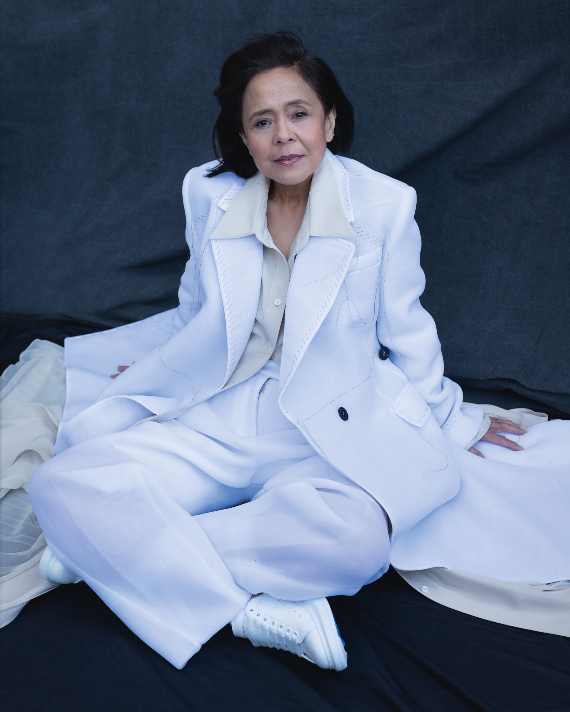 PETER DO coat, shirt, trousers, ALEXANDER MCQUEEN sneakers. Raen Badua