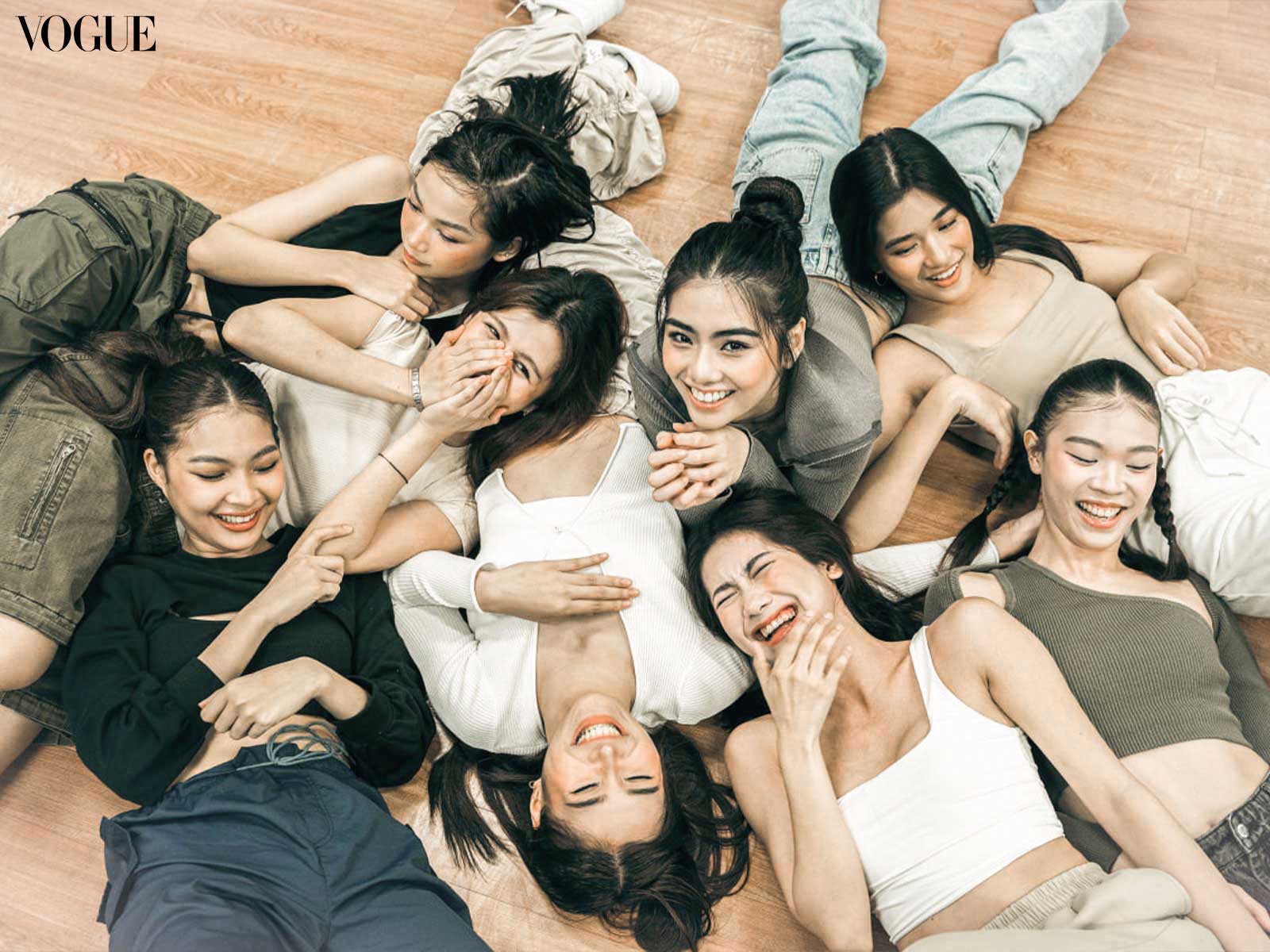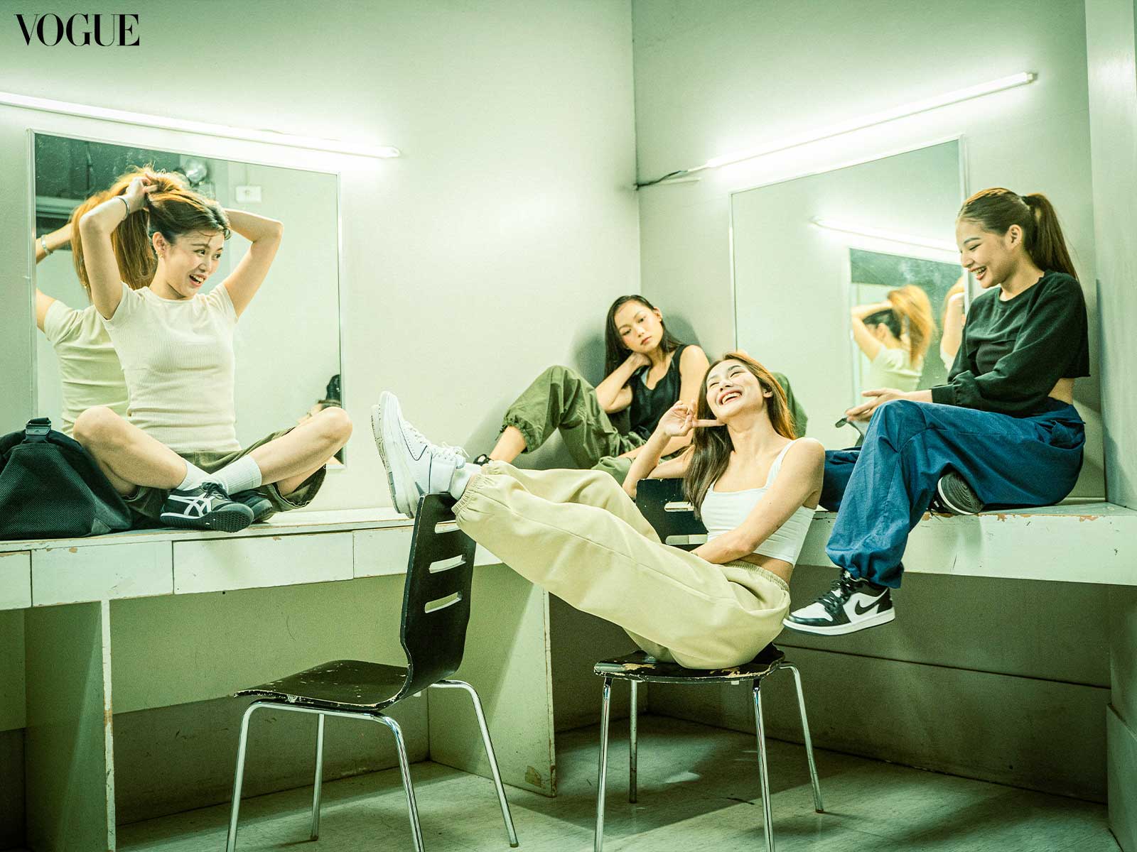 On another day, in their studio in Quezon City, BINI is far more at ease. Today is their first breather after two straight weeks of performances, and they’re working on their second album. Their studio seems like any other standard rehearsal space, with an impeccably polished floor and a wide mirror lining a wall. Under the almost clinical lights, without stage make-up or designer outfits, it’s a place to focus on their craft as performers.