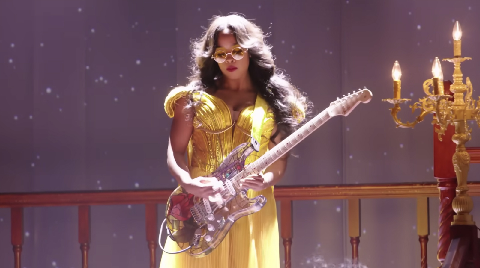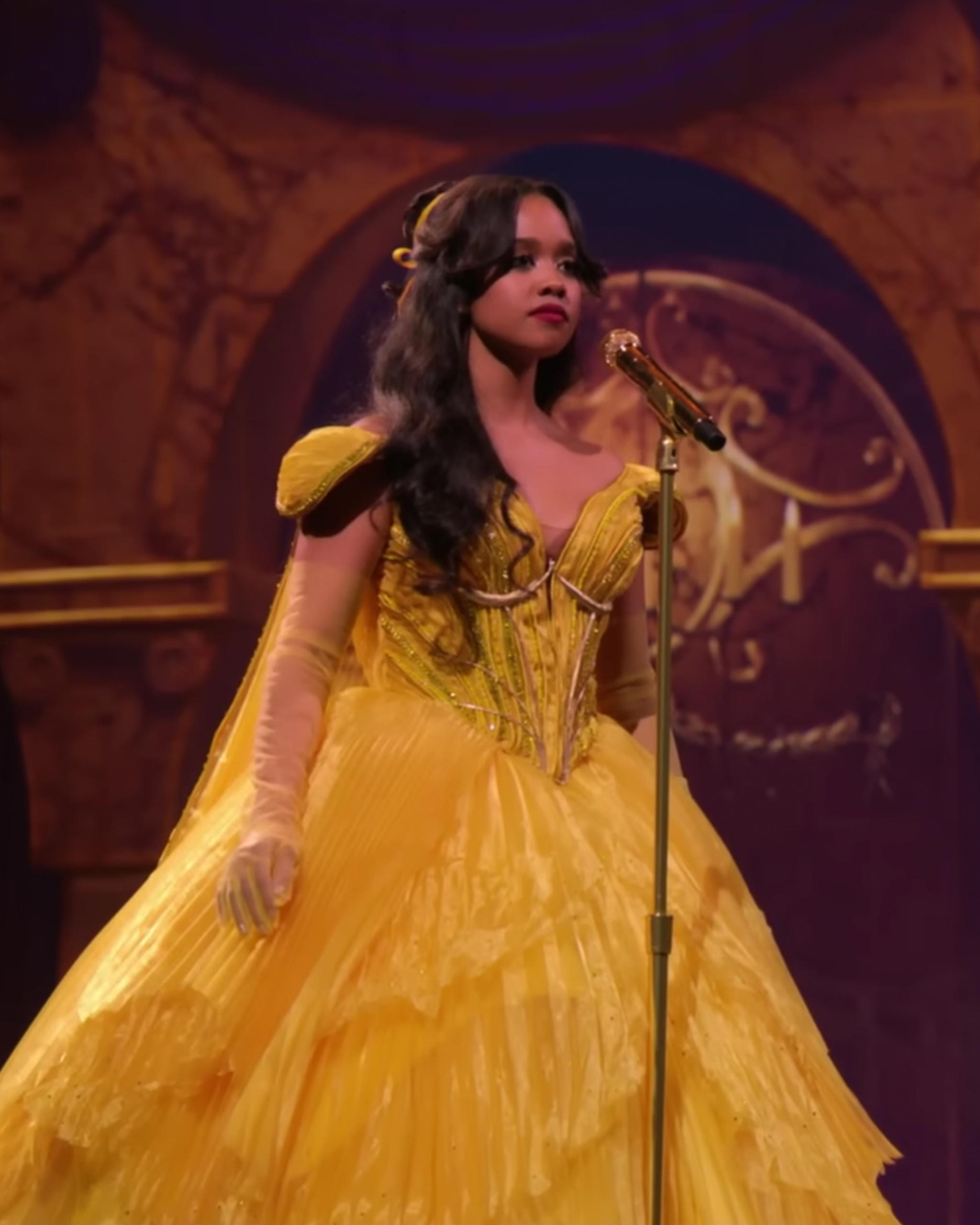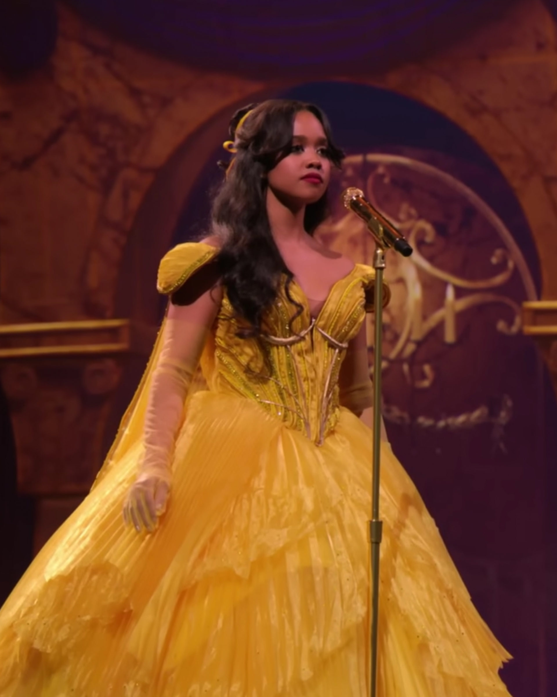 H.E.R. in Belle’s famous yellow dress. Courtesy of ABC / YouTube