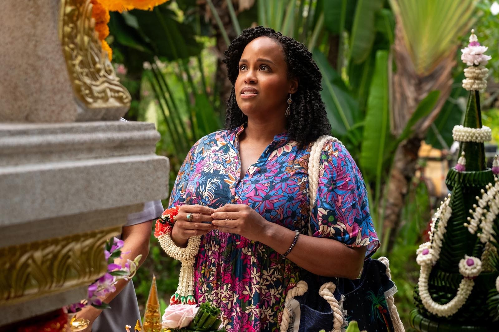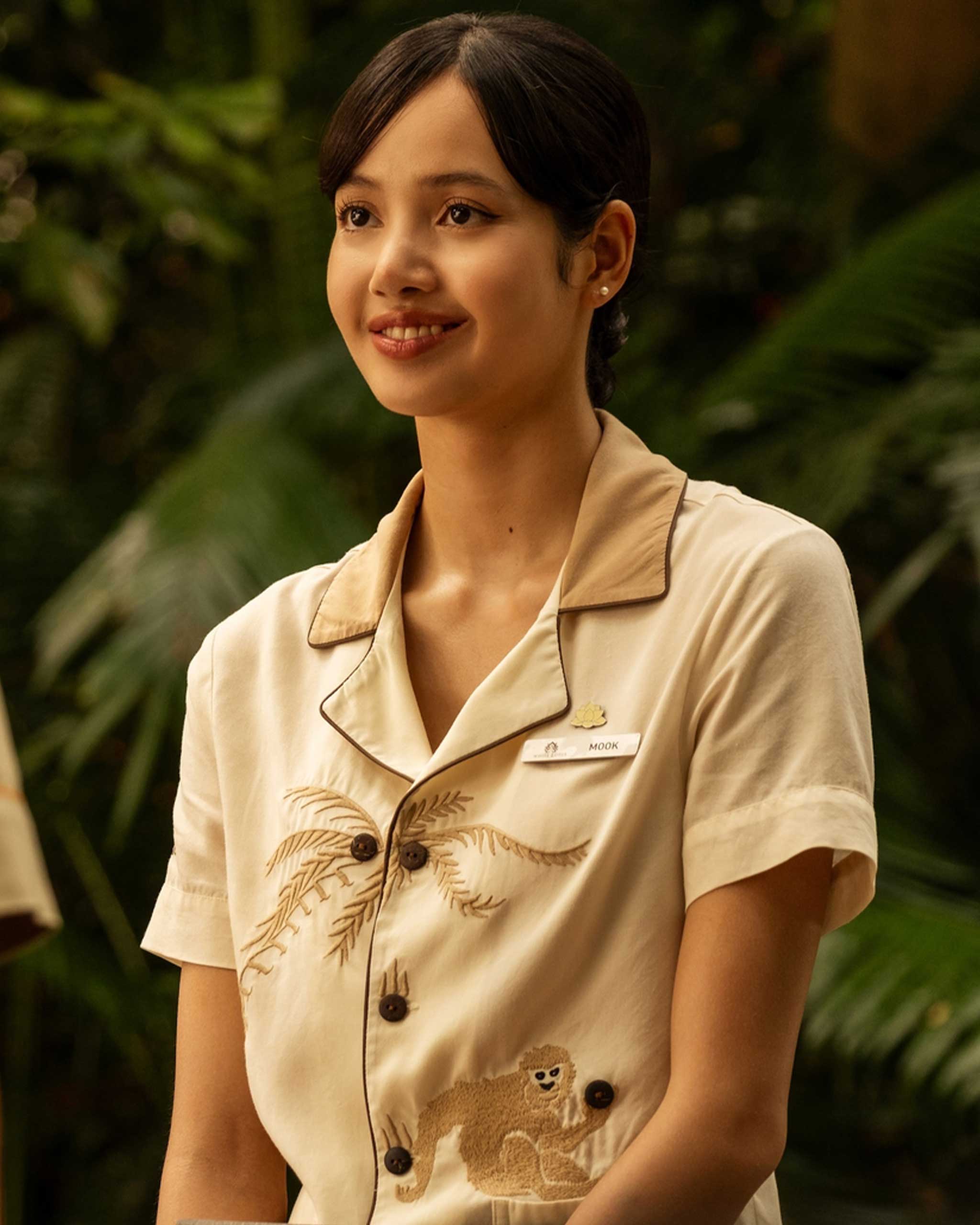 [Lisa] plays the character Mook, who is a member of staff, but she does have a couple scenes where she’s in street clothes. We always try to make it look authentic. So if they’re, you know, if there are local Thais, then we go to the mall and get stuff there, and vice versa. If they’re fancy actresses coming on a beautiful, expensive vacation, we try to imagine if they’ve got the money to throw down on Valentino, Lanvin, or Jacquemus. We try to be a little real, with a [creative] license.