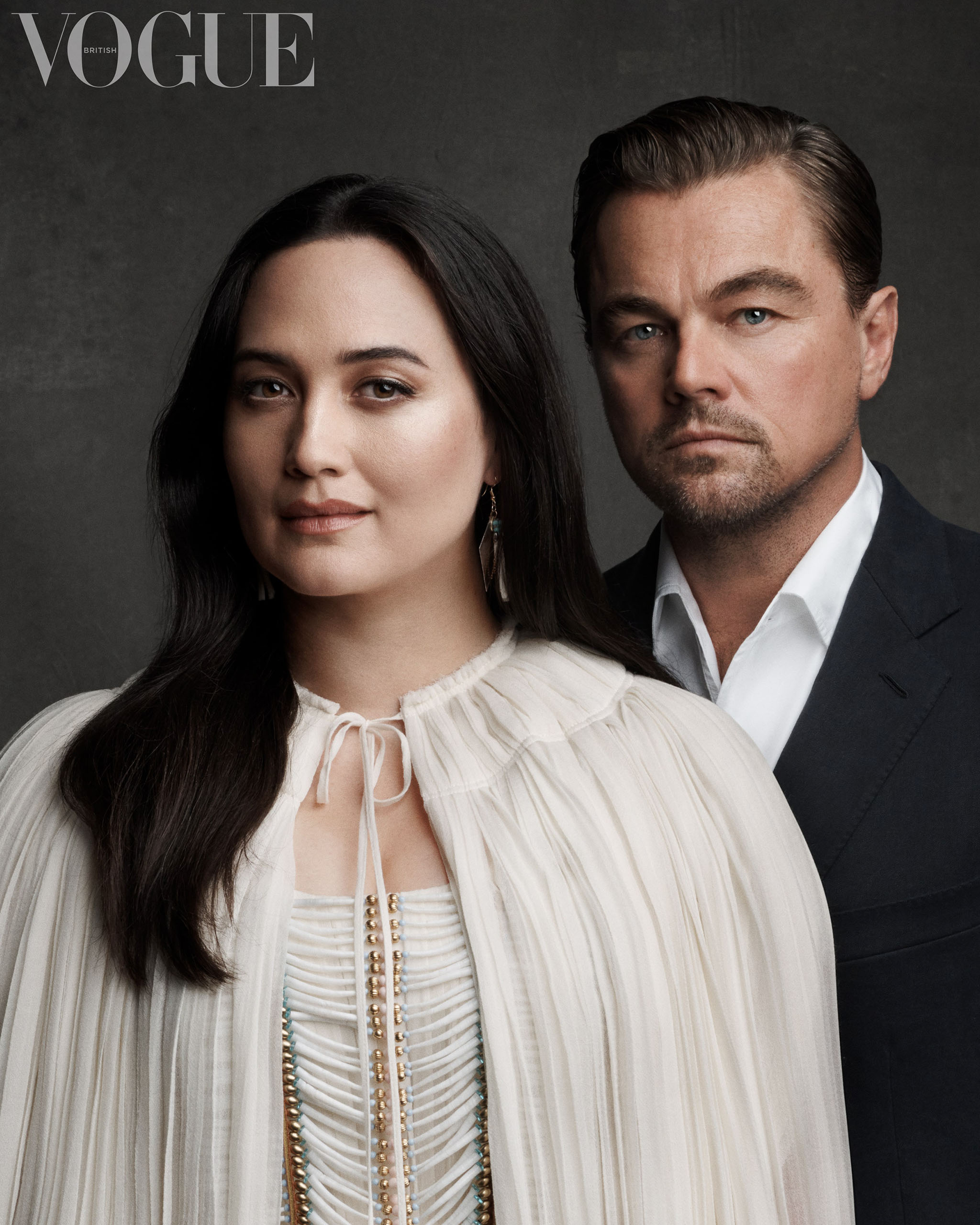 We are chatting in a photo studio in SoHo, New York, on the set of Vogue’s shoot, amid rows of accessories, many made by Native designers. Among them: exquisite earrings from Hopi artist Don Supplee, of the Sun Clan; a dentalium-shell necklace by member of the Crow nation Elias Jade Not Afraid; an intricate wool blanket by Louie Gong (Nooksack) for Eighth Generation. The opulence surrounding us feels fitting: thanks to the oil boom, for a time in the early 20th century the Osage were not only wealthy, but the richest people in the world per capita. As a viewer, I tell the pair, witnessing a world in which it’s people of colour who are the affluent Americans is one of the most moving and exhilarating aspects of the film.