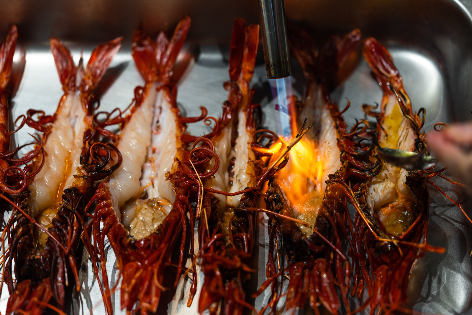 The dinner’s pièce de résistance is the grilled Carabinero, a giant prawn from Spain served with a sauce made from its head, with a side of spicy sambal paste created from other kitchen by-products. A warm slab of potato bread was used to mop up all the juices.