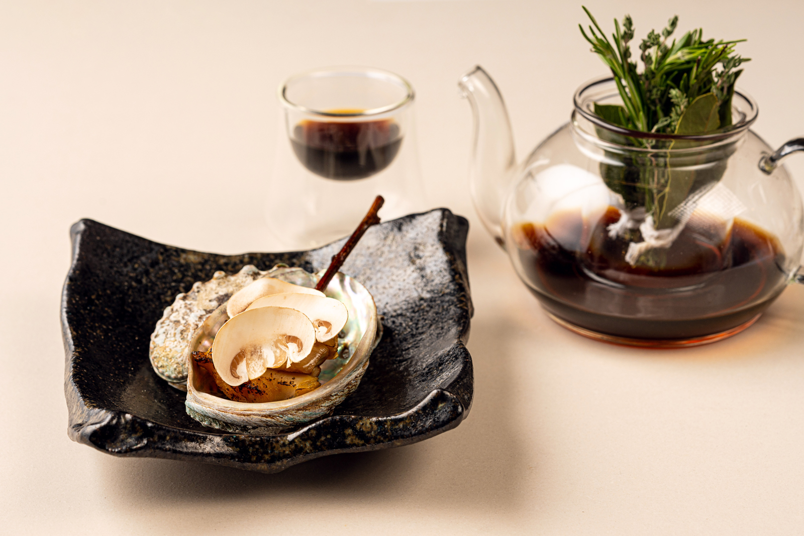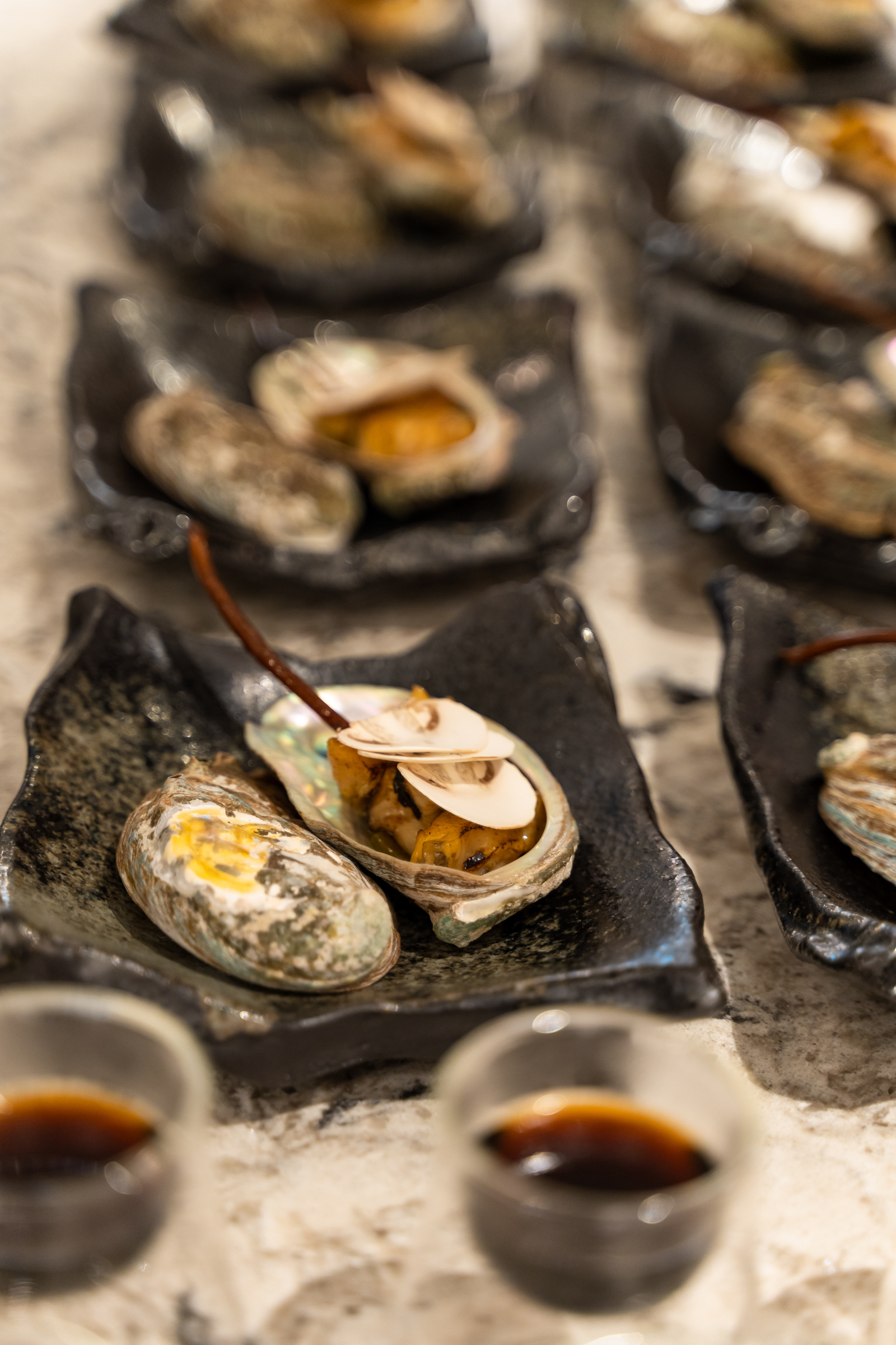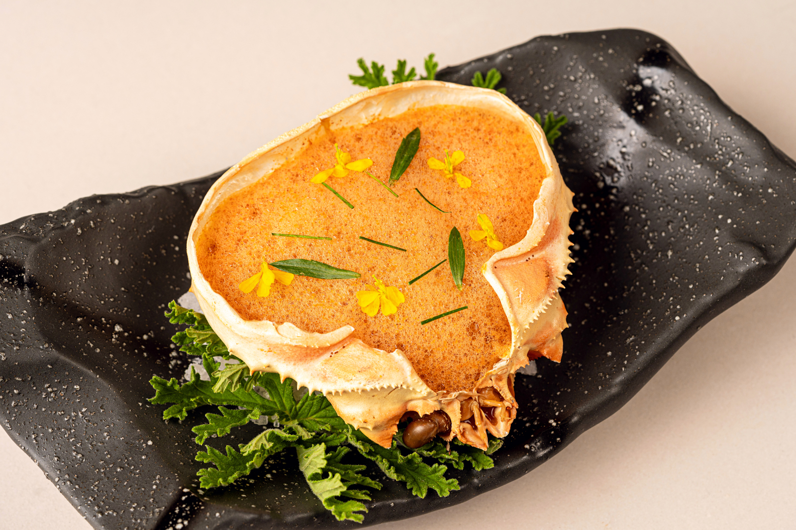 Using every part of the ingredient in harmony is a theme carried throughout the rest of the meal, enjoyed as we circulated around the Eluria model unit. A caviar dish is paired with a sturgeon croquette, because, Siy explains, “I love serving ingredients with either things they grow with, things they eat, or their source. To me, this is important to give a bit more context to the food that we serve, so we never forget where ingredients come from and what beings give up their lives for our sustenance. We’ve been over-exposed to caviar. But have we ever eaten it with the fish it’s harvested from?”