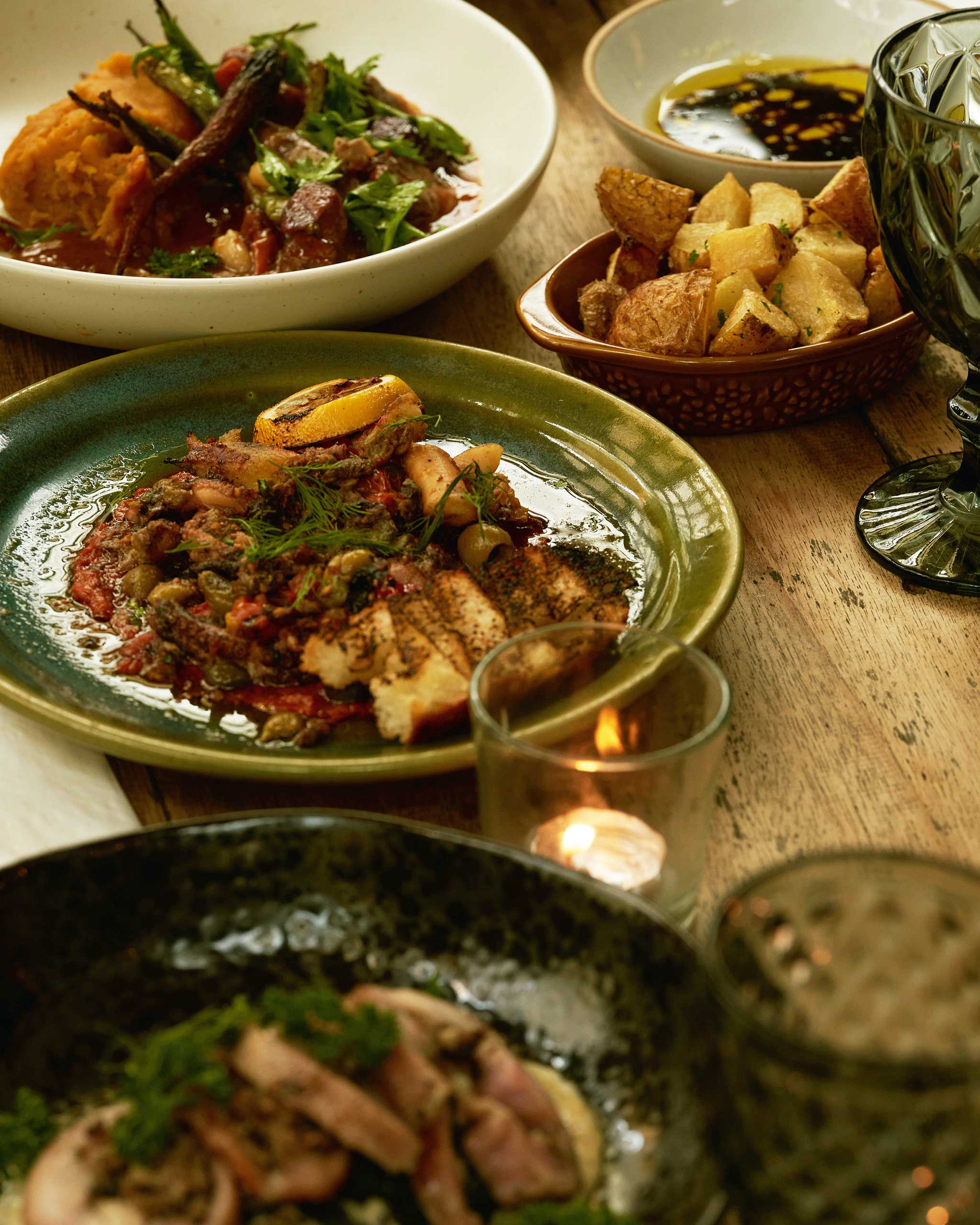 In beat, a plate of hummus garnished with pickled yacon arrives at the table. Then, comes grilled octopus with blistered tomatoes, stuffed rabbit saddle, a board of freshly-baked bread. As if on cue, the famed truffle mushroom gnocchi is served.