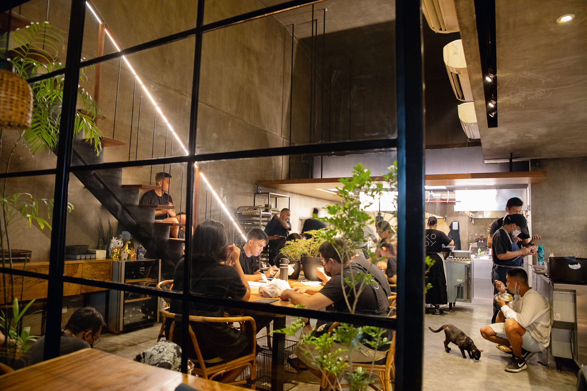 At 10:30 A.M. on an idle Tuesday morning, there is a slow buildup of people dressed in black T-shirts and slacks making their way to the doors of Toyo at the pathway of Karrivin Plaza’s The Alley. Some of them ride into the alley with their bikes, and an unusual number of them are sporting Birkenstock Bostons—classic commis attire.