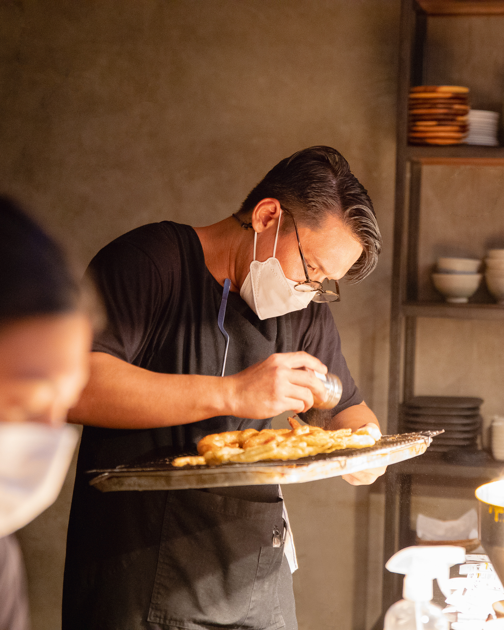 The reality of kitchen life indisputably demands dedication and discipline, but it seems like everyone at Toyo is driven by the same kind of crazy. “It’s long hours, you’re standing all day, it’s hot, and you’re dealing with a lot of people,” says Pau Achacoso, who’s a part of Toyo’s front-of-house staff.