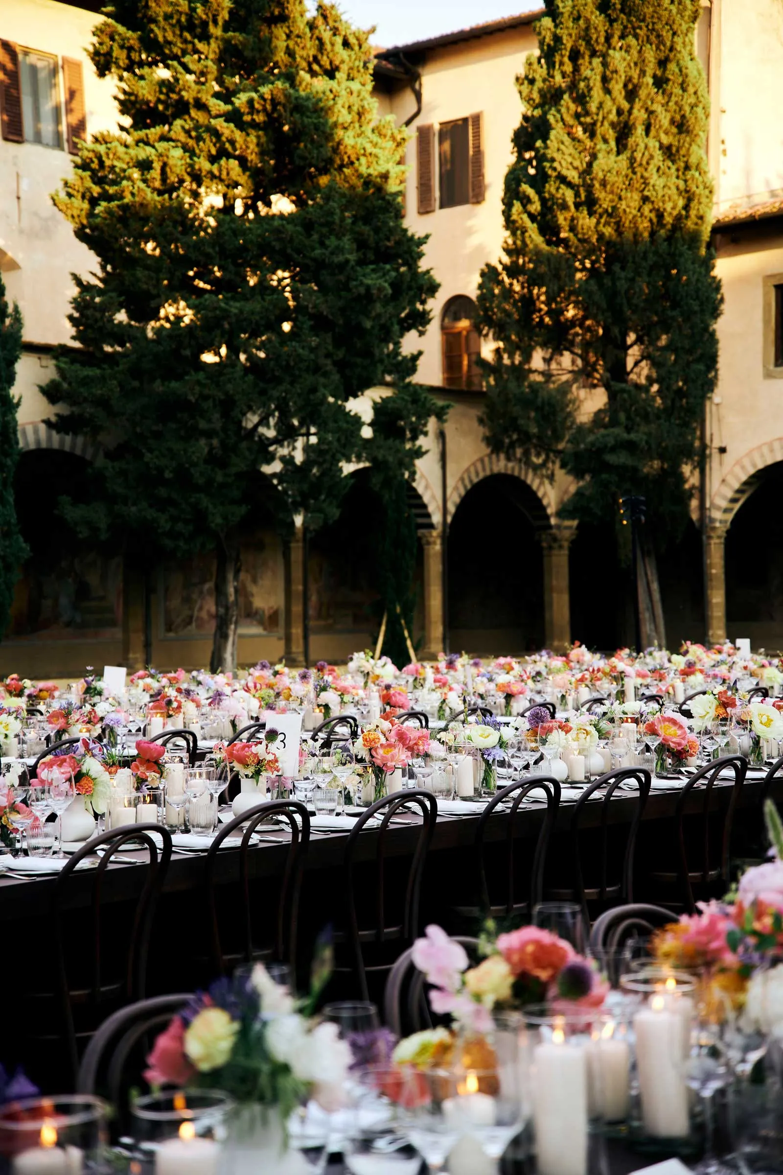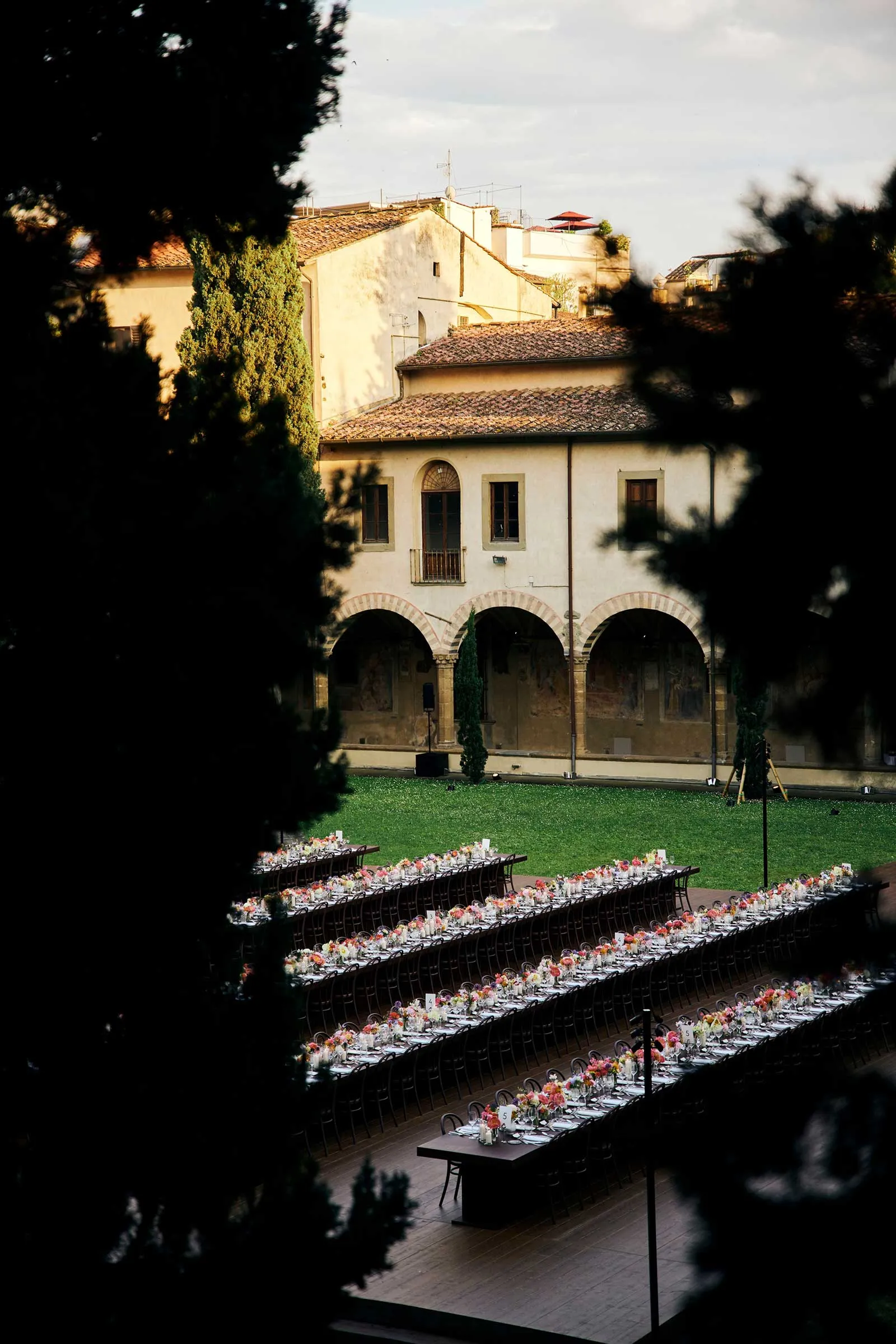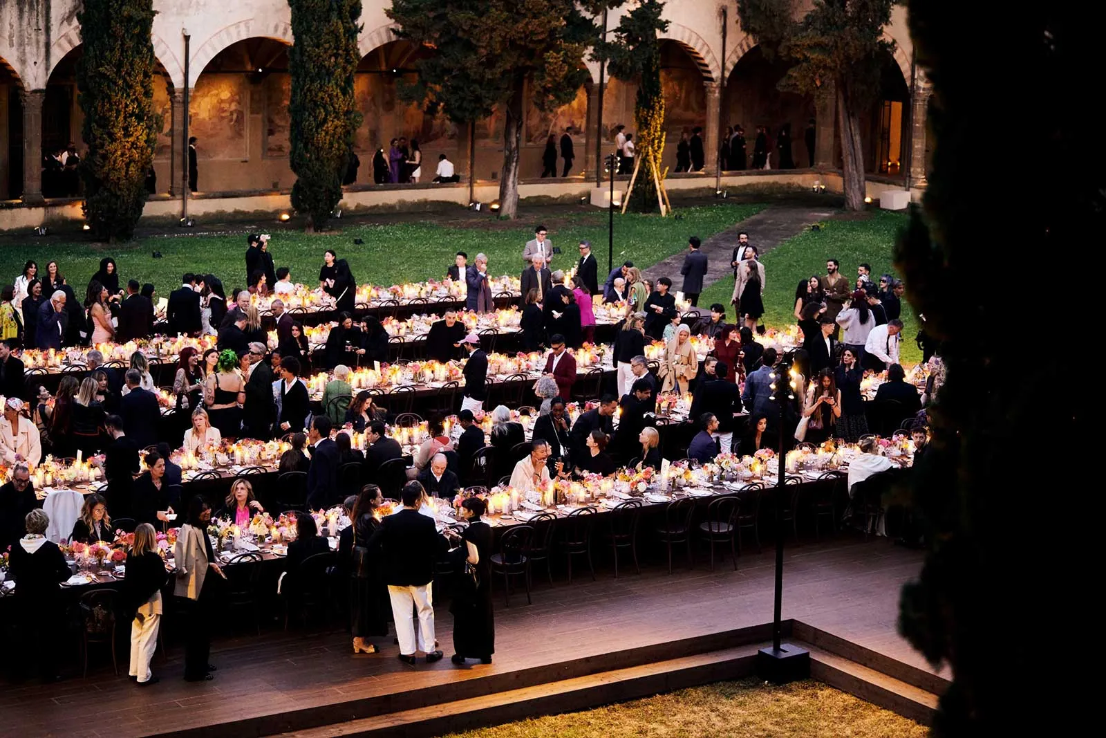 If the Gucci Cruise 2026 runway show at Palazzo Settimanni felt like a meditation on legacy, the after-party was pure celebration. Following the double-showing of the collection—first for VIP clients inside Gucci’s historic archive, then again for press and fashion’s front row in nearby Piazza Santo Spirito—guests were ushered through the golden hour streets of Florence to the cloisters of Santa Maria Novella, where dinner awaited.