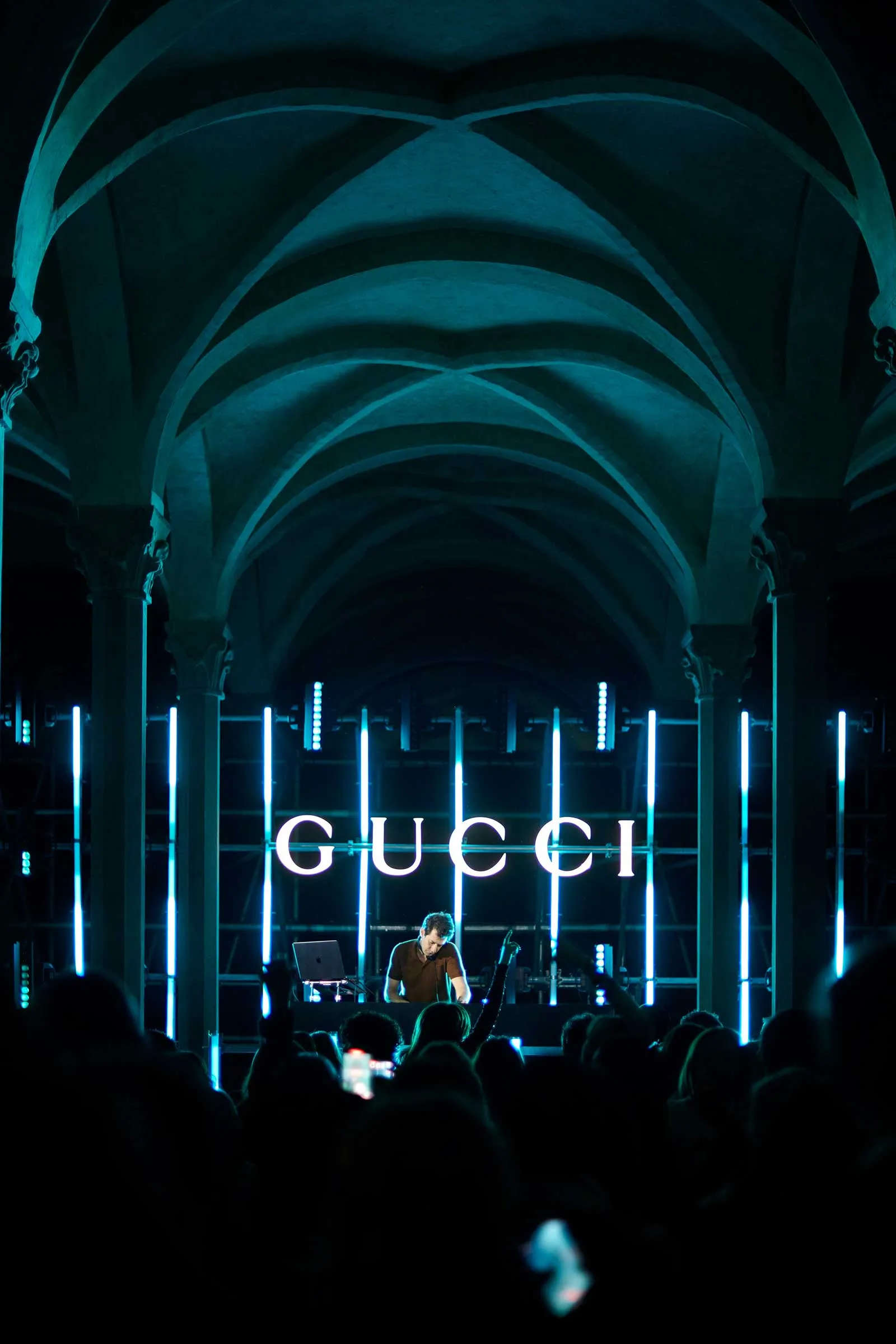 The setting was more than just picturesque—it was historically loaded. Santa Maria Novella’s cloisters were originally part of a 13th-century Dominican monastery, and for one night only, they played host to Gucci’s global tribe: editors, collectors, artists, and muses. As dessert gave way to Negronis, the crowd rose to its feet for DJ Mark Ronson, who took over the decks and transformed the basilica into a dance floor.