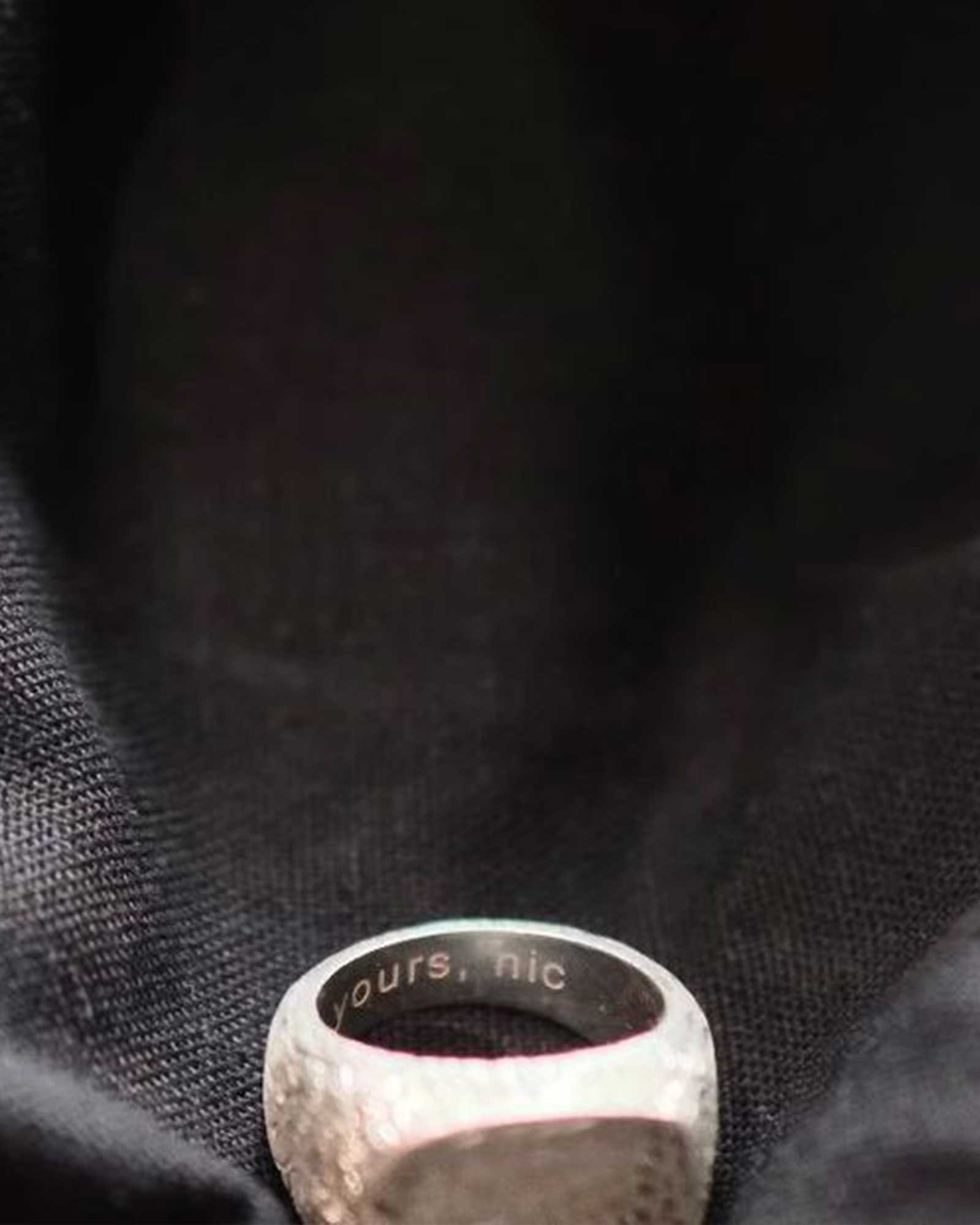 Artist Nicole Concepcion’s choice is a meticulously well-thought out gift idea: engraved jewelry. Concepcion showed her appreciation for her other half with a ring by NAMÌ designed by Mano Gonzalez, with a message on the ring’s interior. To complete the jewelry set, she also got an engraved emerald pendant, also by NAMÌ.